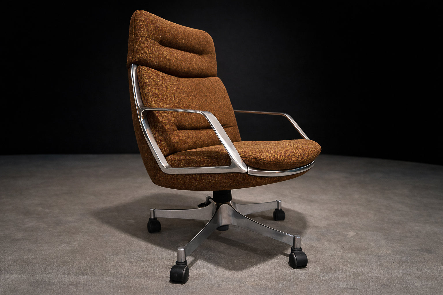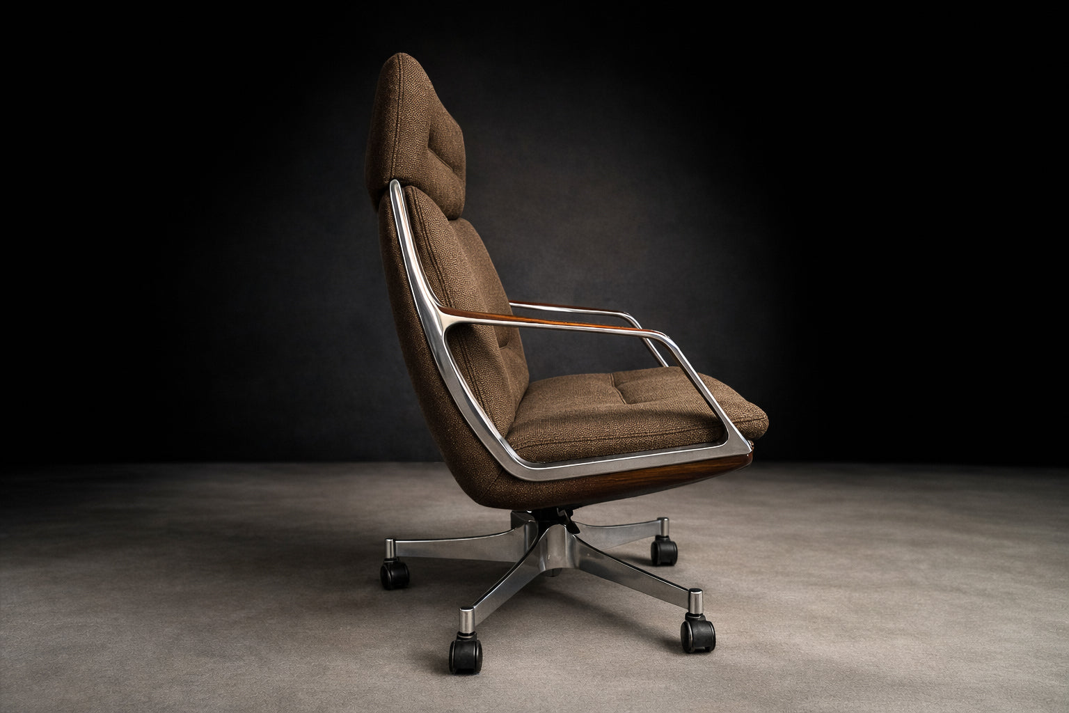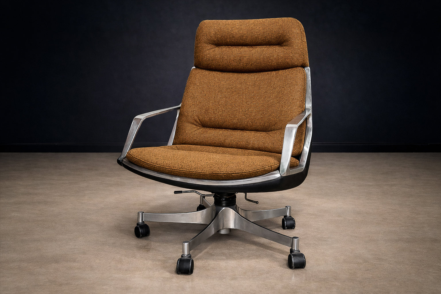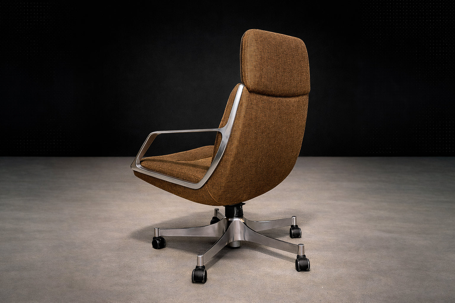 Jorge Zalszupin (1922–2020) reshaped Brazilian modernism through sculptural forms and innovative production. Founder of L’Atelier, he fused European training with Brazilian materials, pioneering expressive surfaces and sophisticated craftsmanship that bridged industry and artistry.