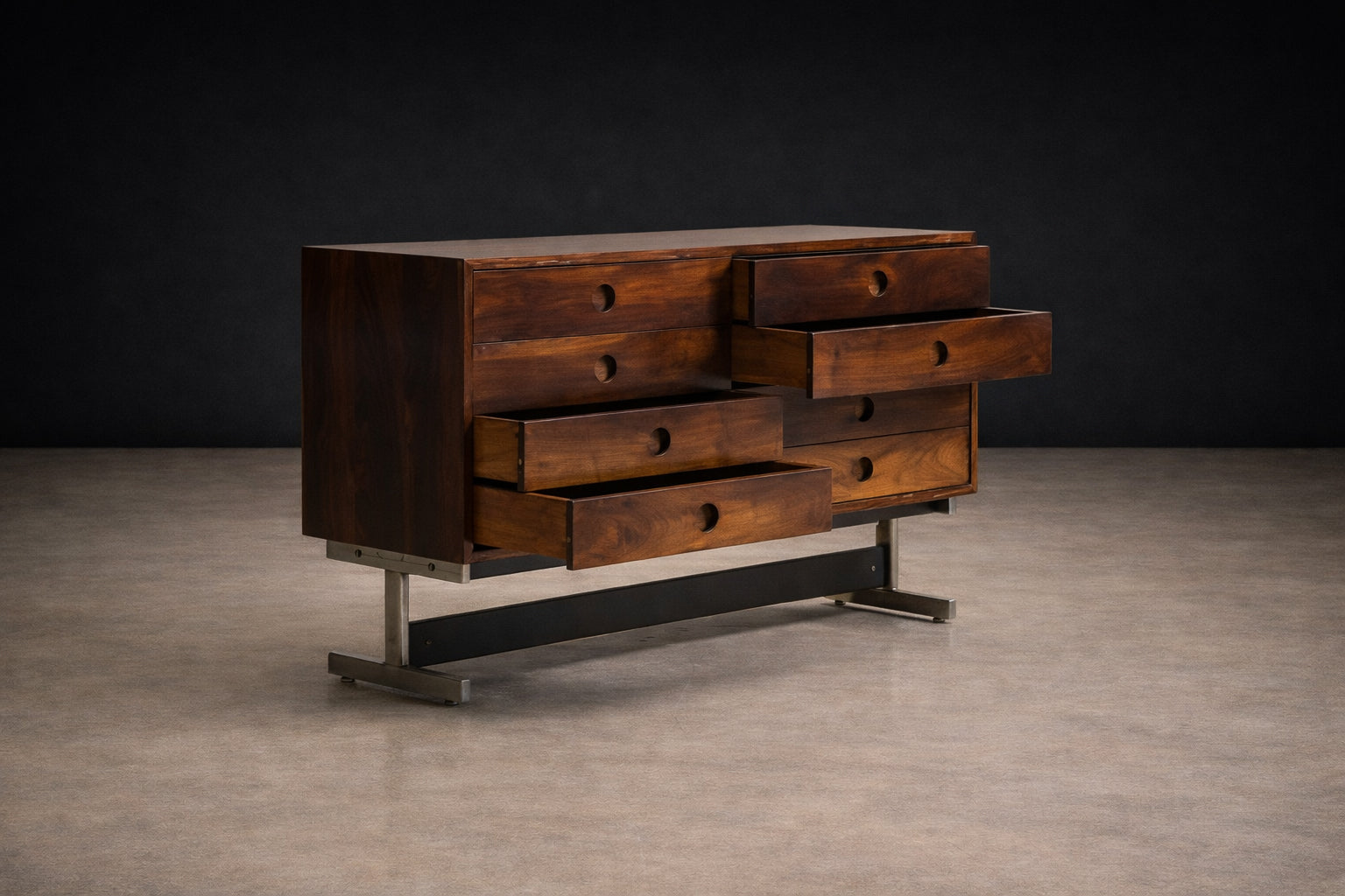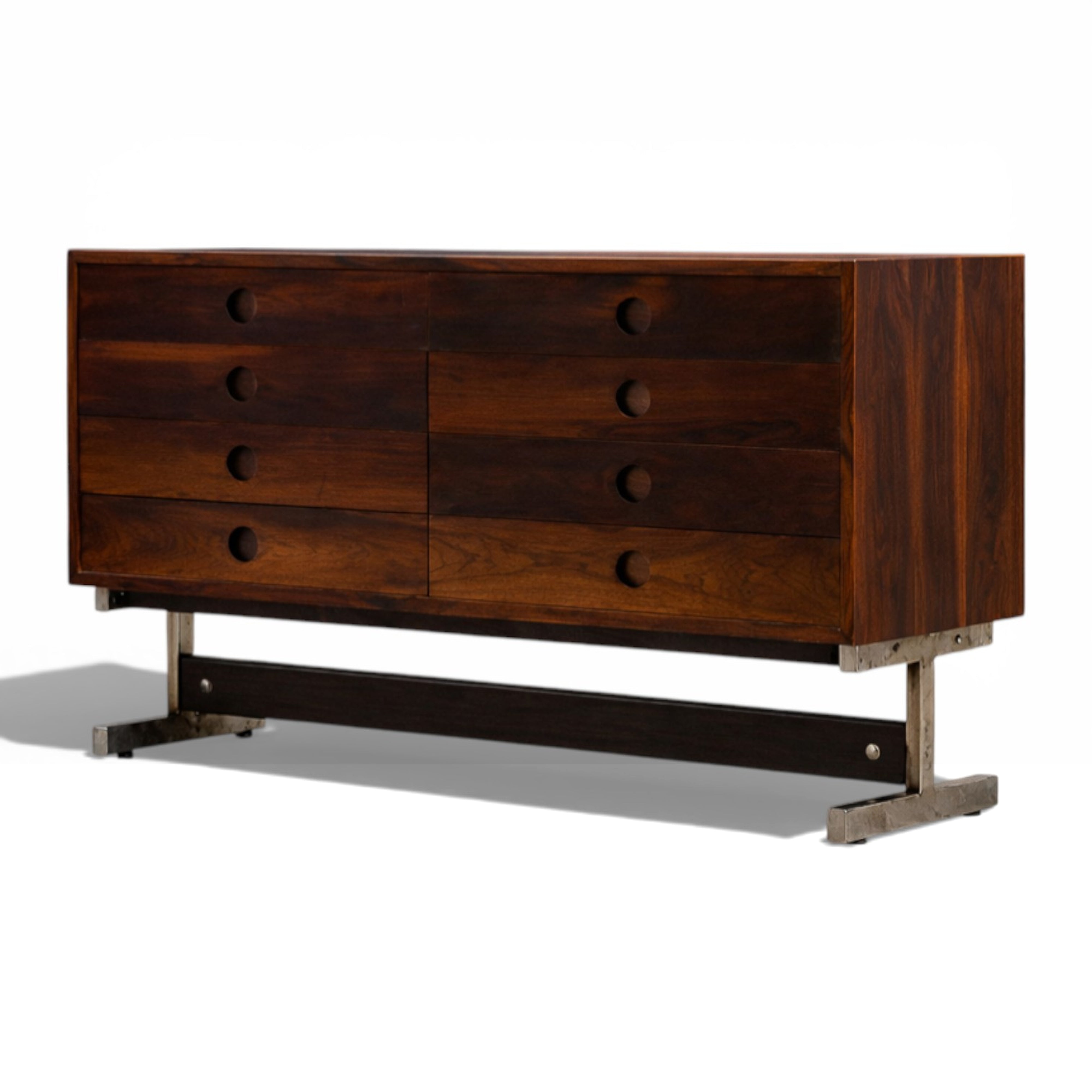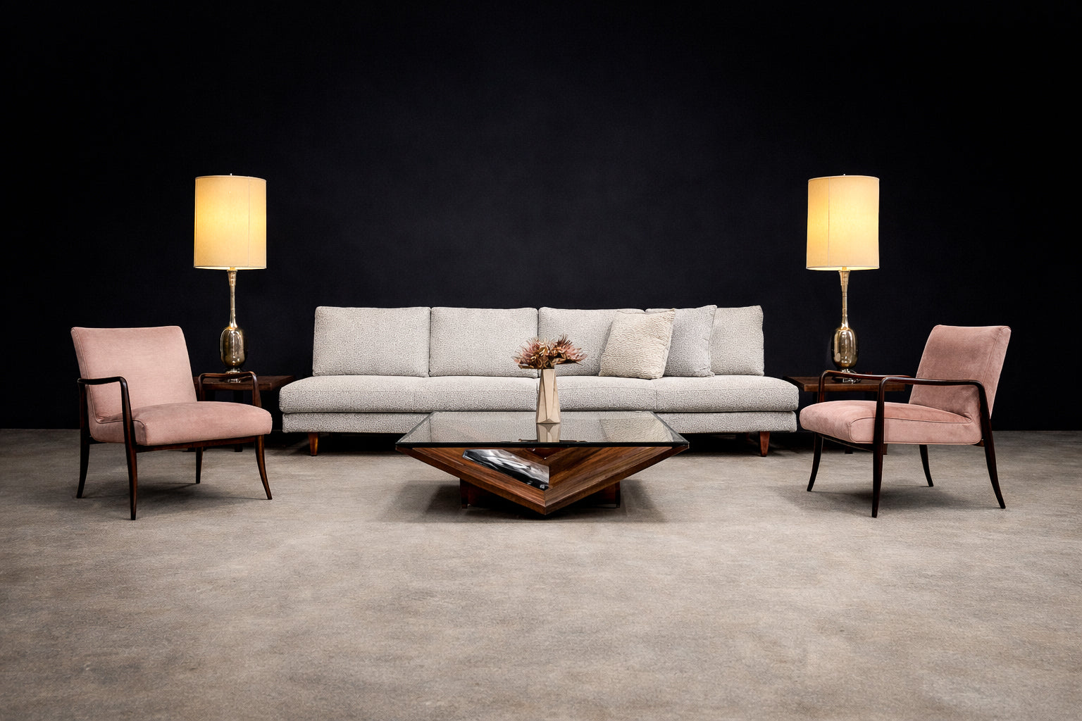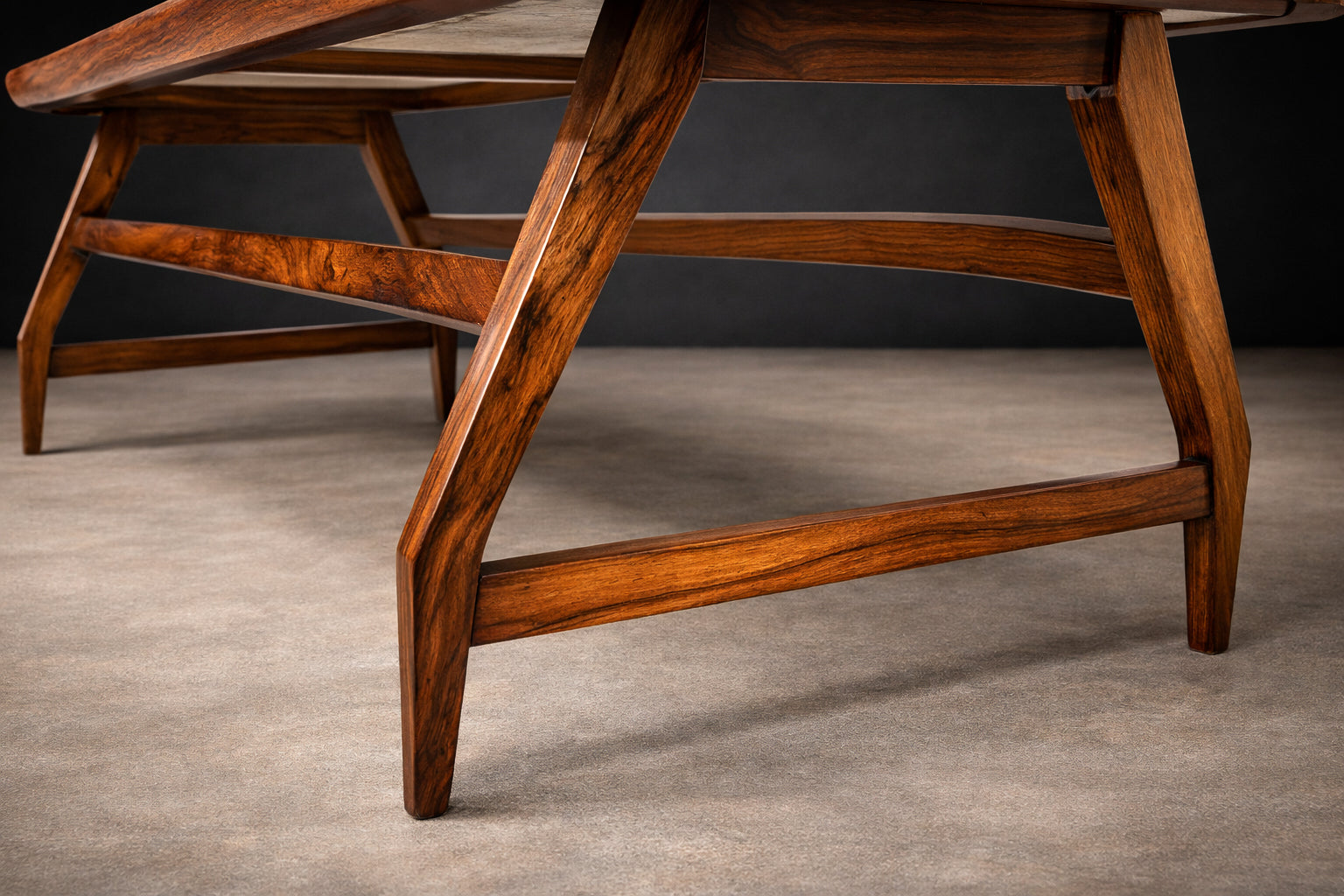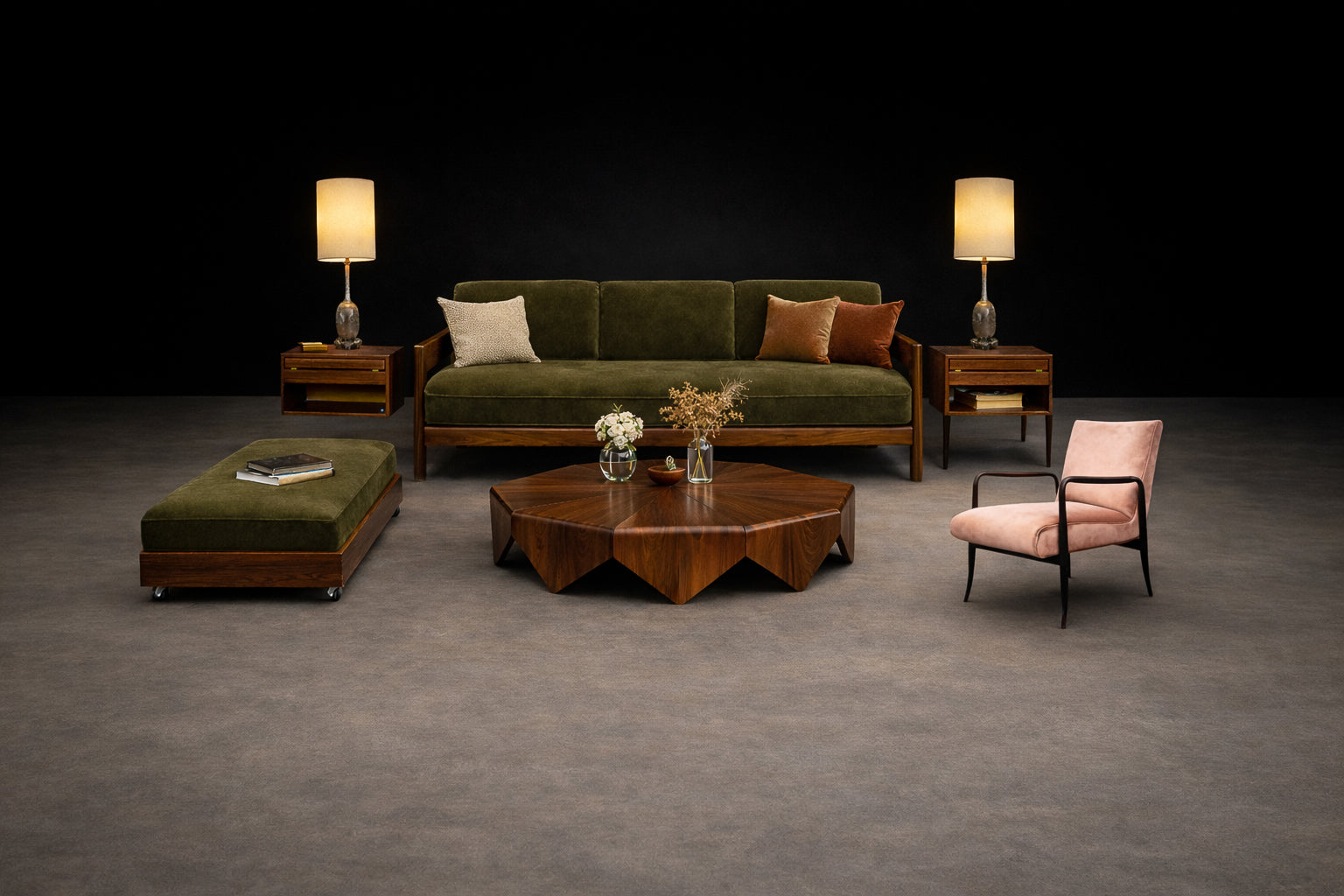 This section celebrates the lesser-known contributors to Brazilian modernism—designers, workshops, and small manufacturers working alongside iconic figures between the 1940s and 1970s. Benefiting from rapid modernization, close ties between architects and artisans, and access to native hardwoods, they produced refined, architecturally driven furniture. Often overlooked due to limited scale and exposure, these works reveal the depth, diversity, and craftsmanship of Brazil’s modern design legacy.