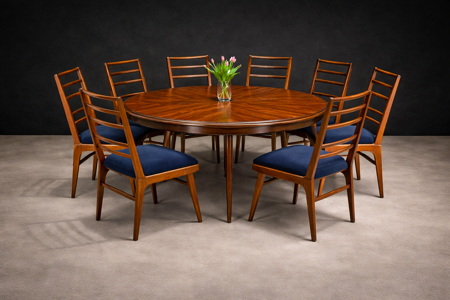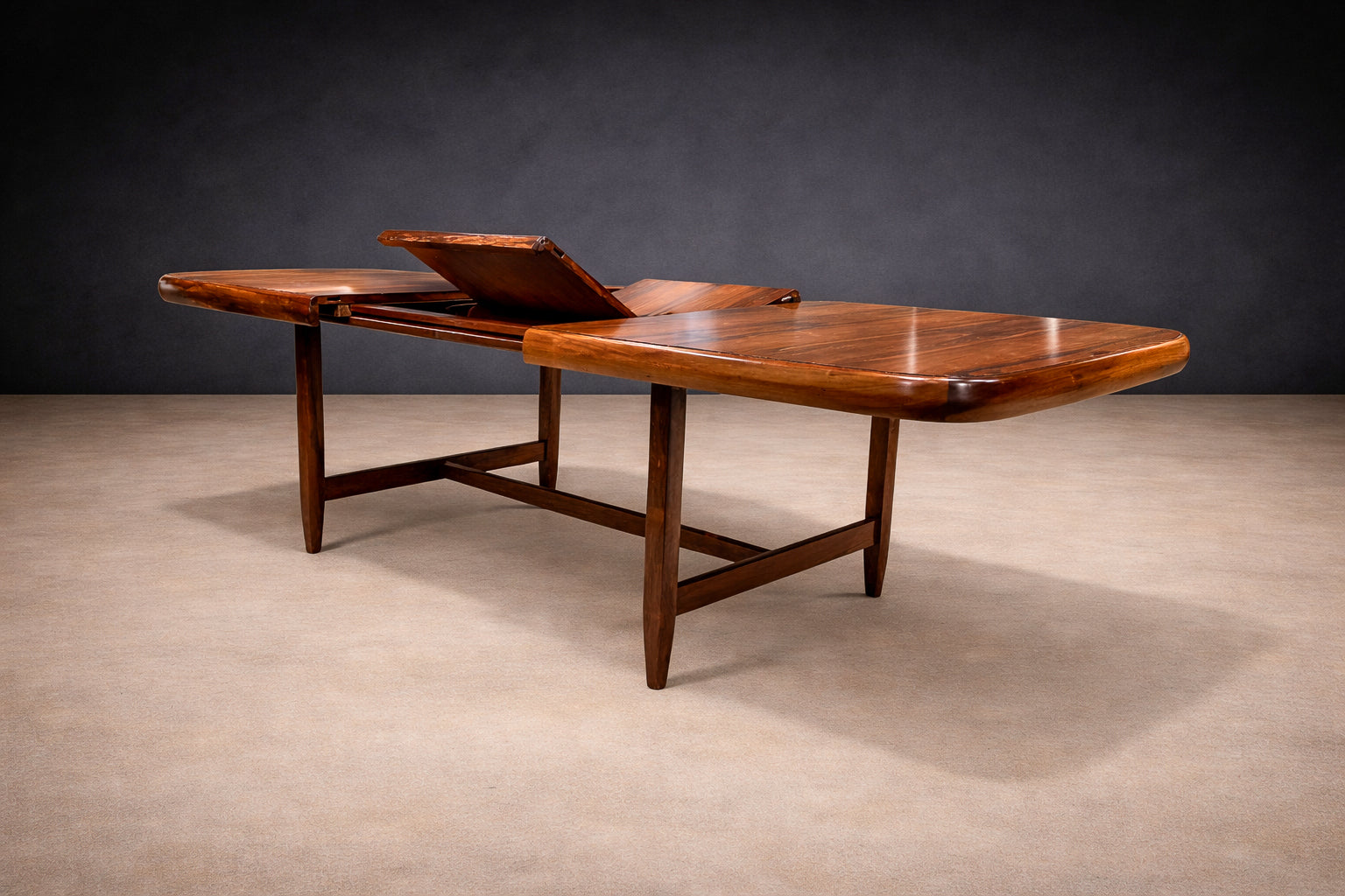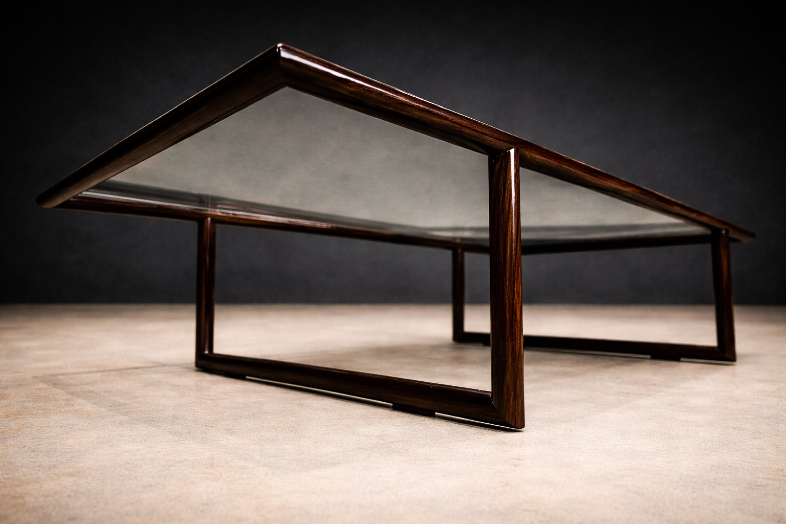 Joaquim Tenreiro (1906–1992) pioneered Brazilian modern furniture by uniting artisanal woodworking with modernist clarity. Rejecting excess ornament, he elevated native woods and hand craftsmanship, laying the foundation for a distinctly Brazilian modern design language.