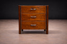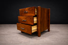 Designed by Jorge Zalszupin, this three-drawer filing cabinet reflects the designer’s disciplined approach to proportion, material refinement, and architectural clarity. Conceived during the height of Brazilian modernism, the piece demonstrates Zalszupin’s ability to elevate utilitarian furniture through precise detailing and material contrast.