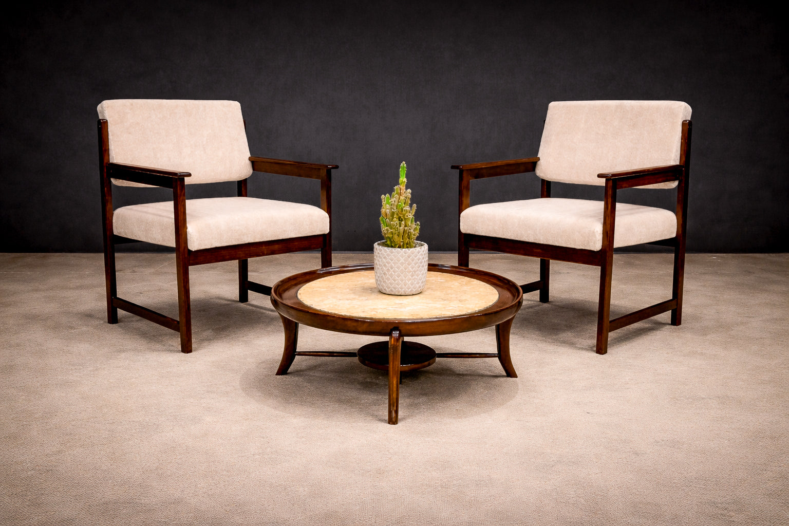 Brazilian Modern Pair of Armchairs in Brazilian Hardwood & Fabric, Gelli, Brazil, 1960s - Lot 508