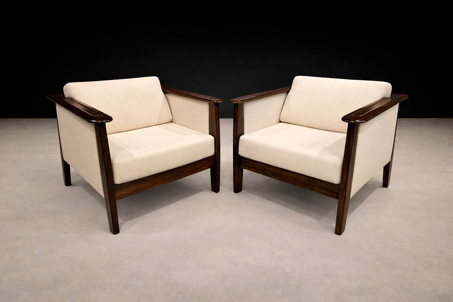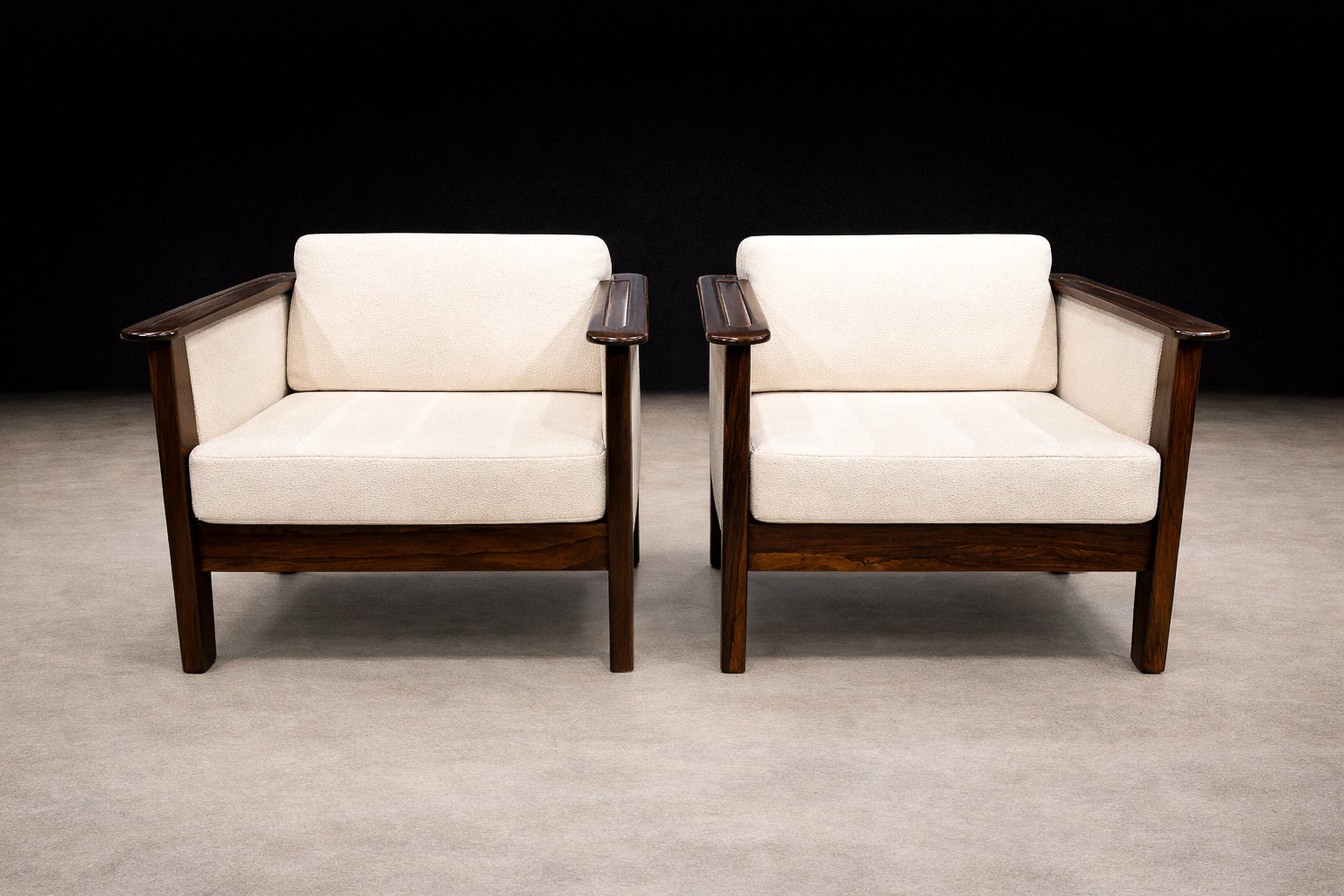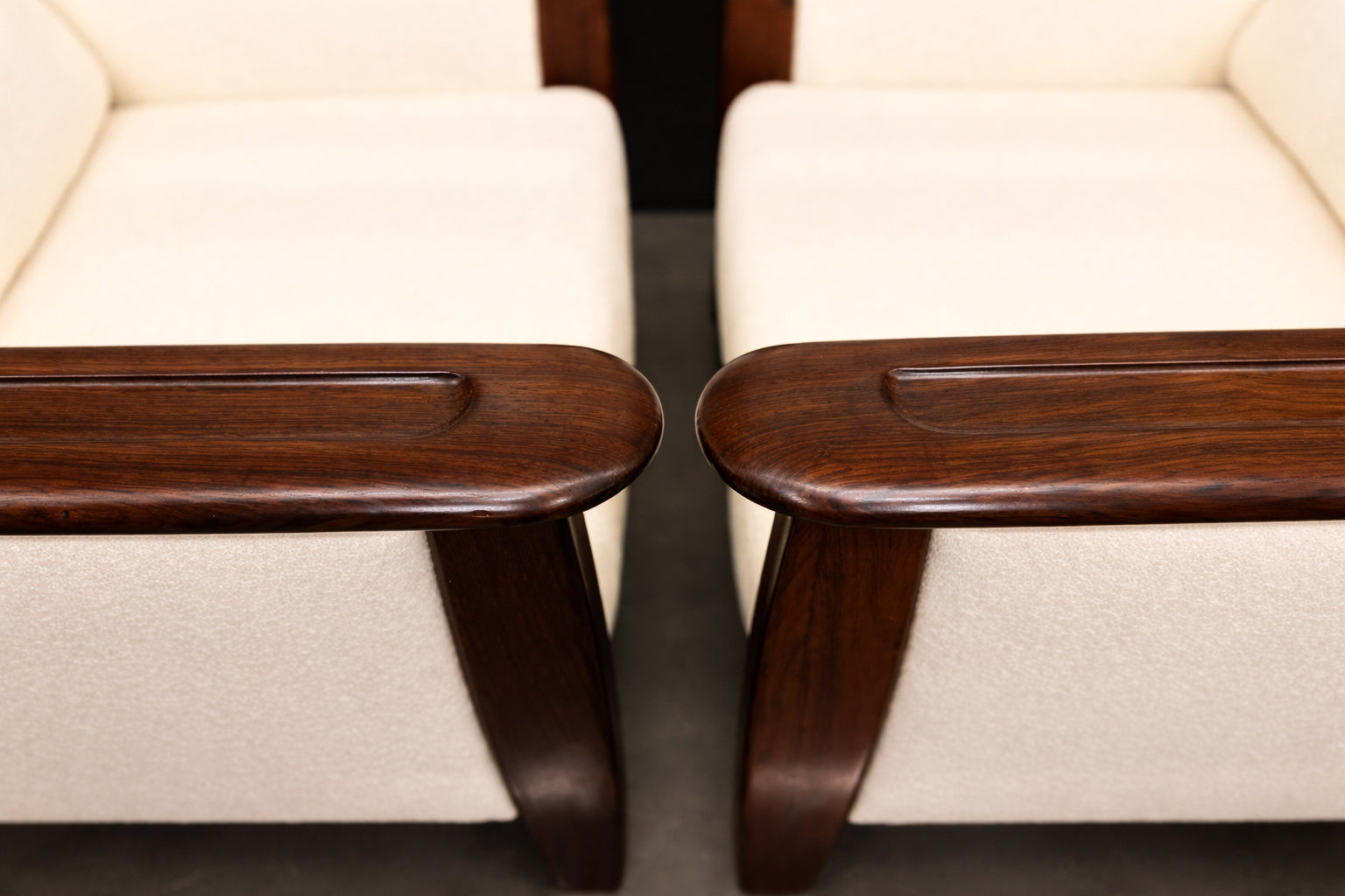 Pair of Armchairs in Brazilian Rosewood & Off-White Bouclé by Fátima, 1960s – Lot 549