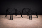 The pair has been professionally repainted in black and sealed with an outdoor-grade protective coating. They present in excellent vintage condition, with the finish reinforcing the precision of the linear framework.