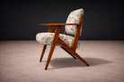 Designed in the 1950s by José Zanine Caldas (1919–2001), this rare Brazilian armchair exemplifies the designer’s early modernist language—where sculptural wood construction meets a deeply human, functional sensibility.