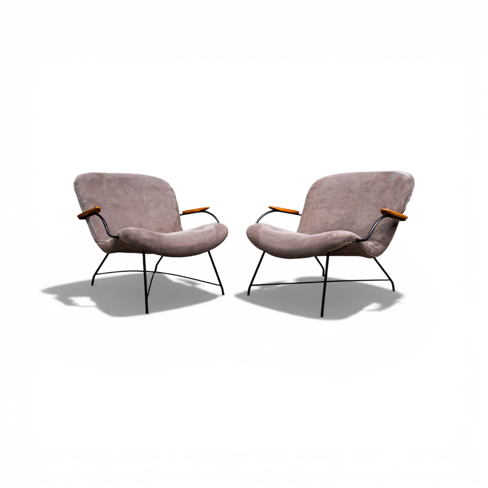 Pair of Armchairs Gray Fabric, Rosewood, & Metal, Carlo Hauner, 1950s - Lot 184