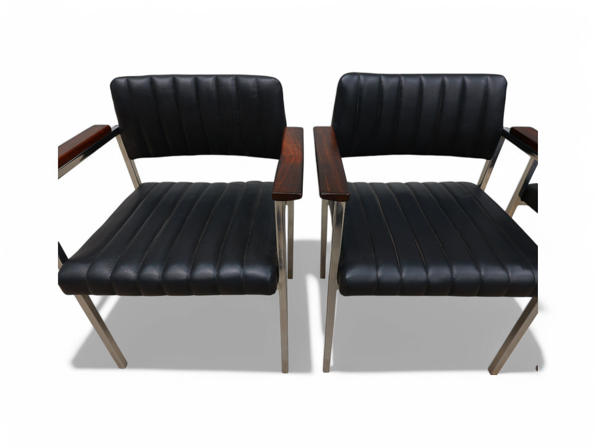 Armchairs in Steel, Leather & Rosewood Unknown, 1960s - Lot 173-342