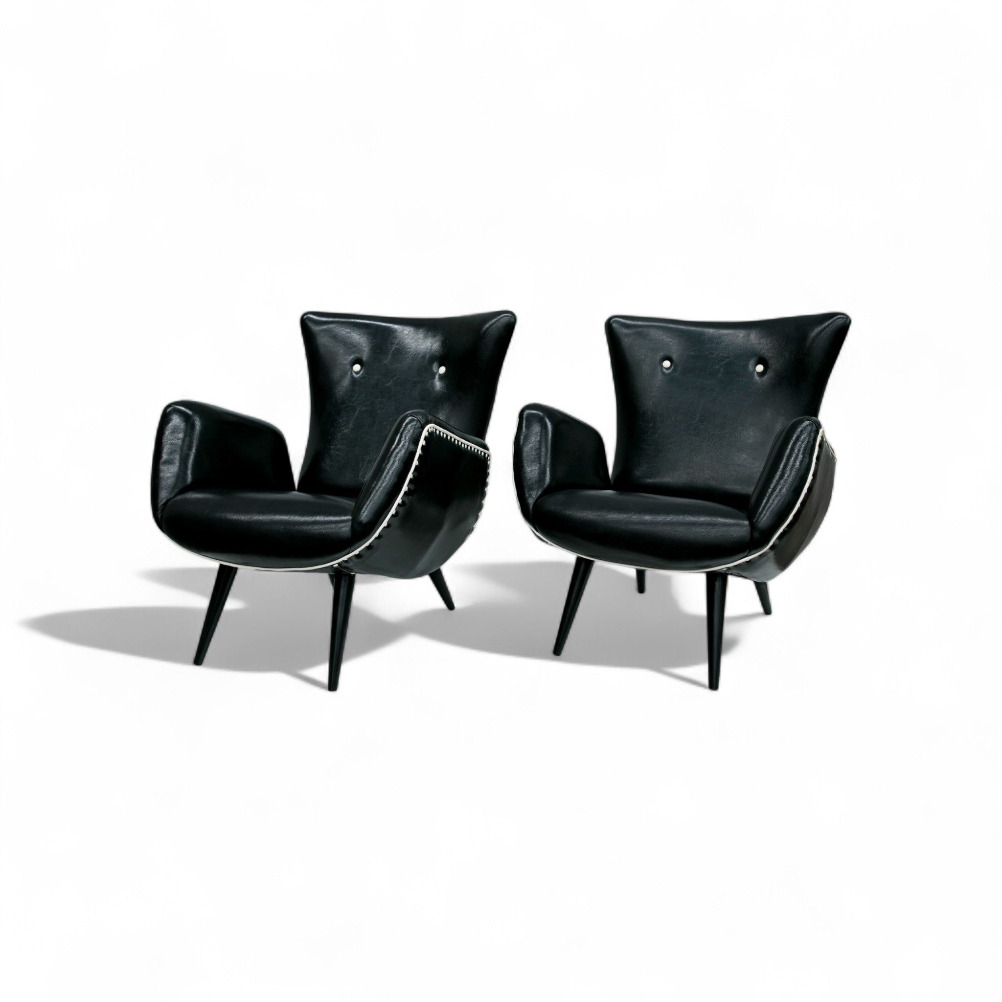 Pair of Armchairs in & Faux Black Leather, Unknown, 1950s - Lot 363A