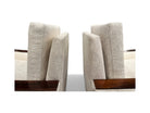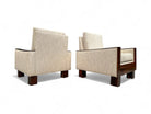 These Brazilian modern armchairs by Celina, dating from the 1960s, are crafted from Brazilian rosewood and showcase a sleek, rectangular shape with wide armrests. The base features four sturdy rectangular legs. Reupholstered in a plush, textured, high-performance fabric that contrasts beautifully with the deep brown tones of the rosewood, these chairs combine style with comfort. They are an ideal choice for any elegant interior, offering both aesthetic appeal and a cozy seating option.