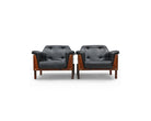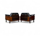 Pair of Armchairs in Rosewood & Black Leather, Bertomeu, 1960s - Lot 684A