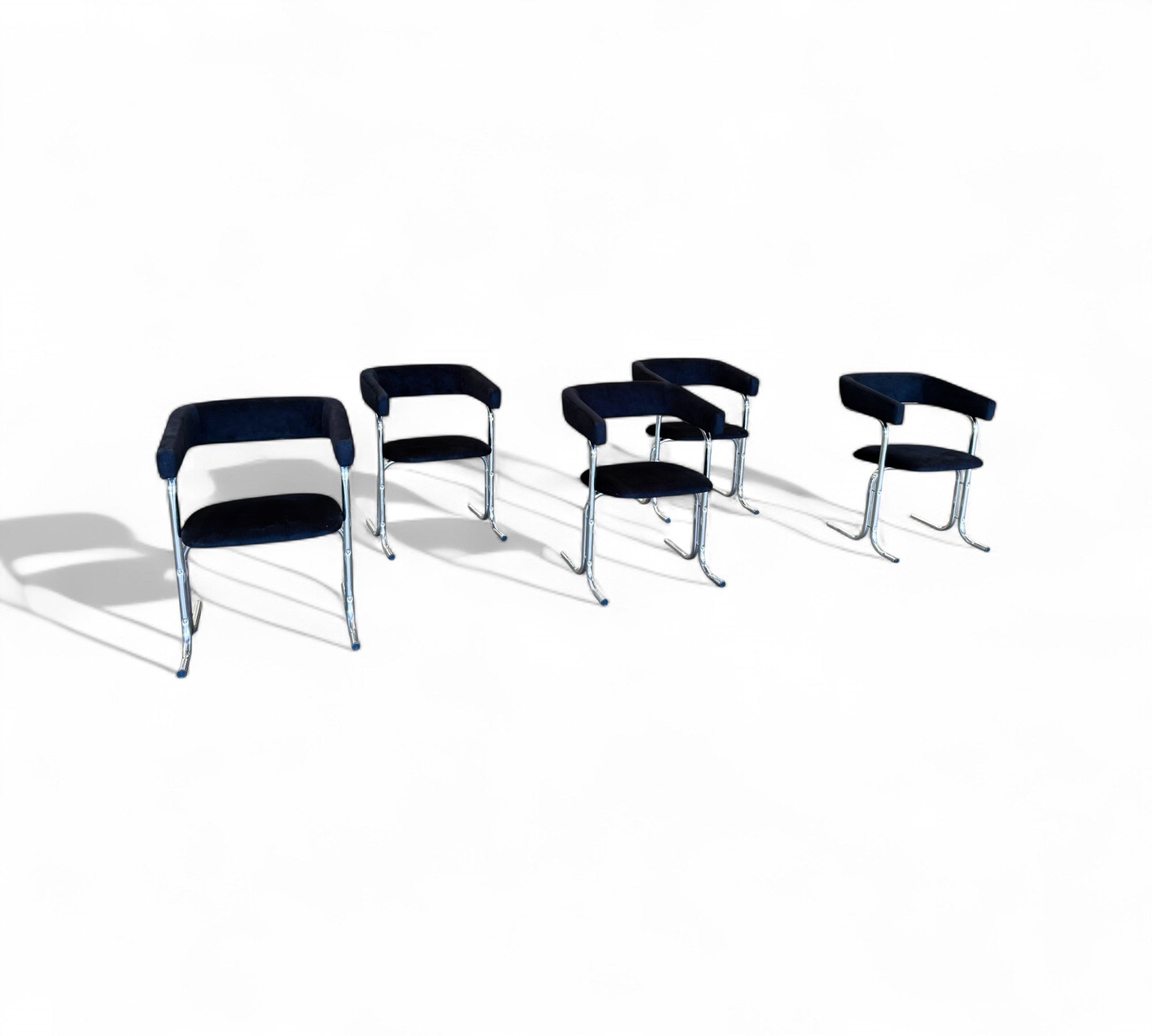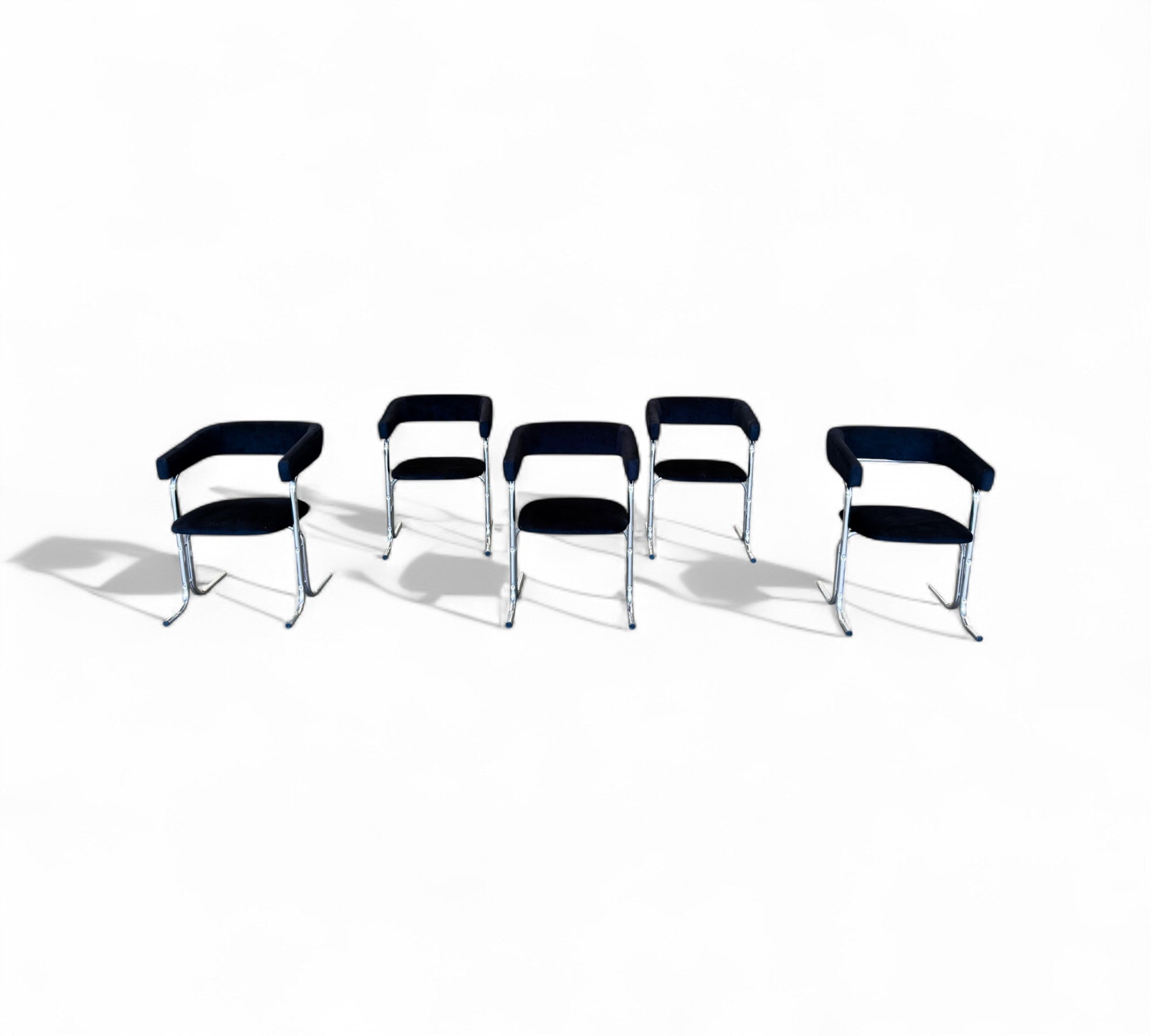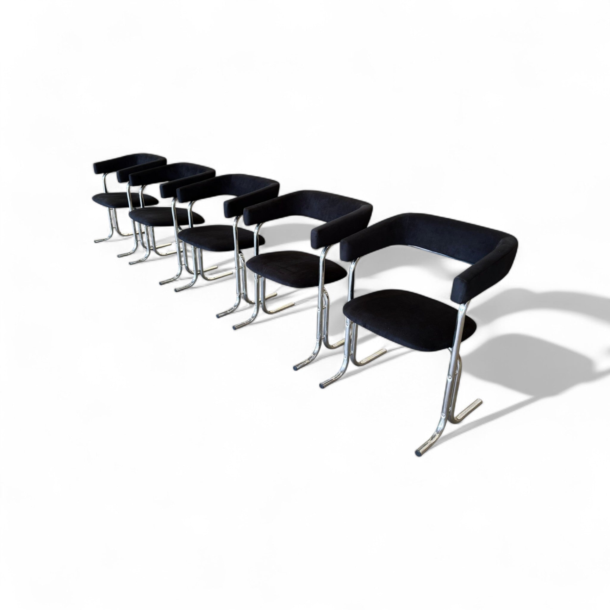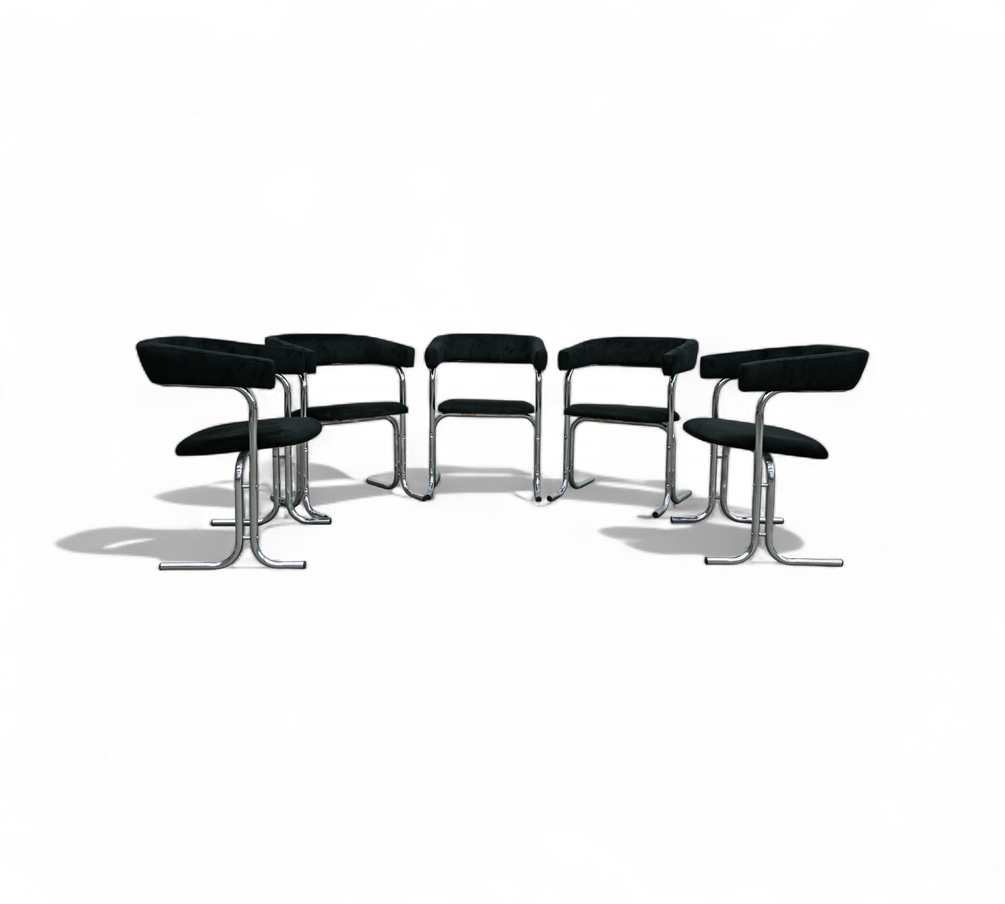 Set of Five Armchairs in Chrome and Black Fabric, Pozza Moveis, 1960s - Lot 165A