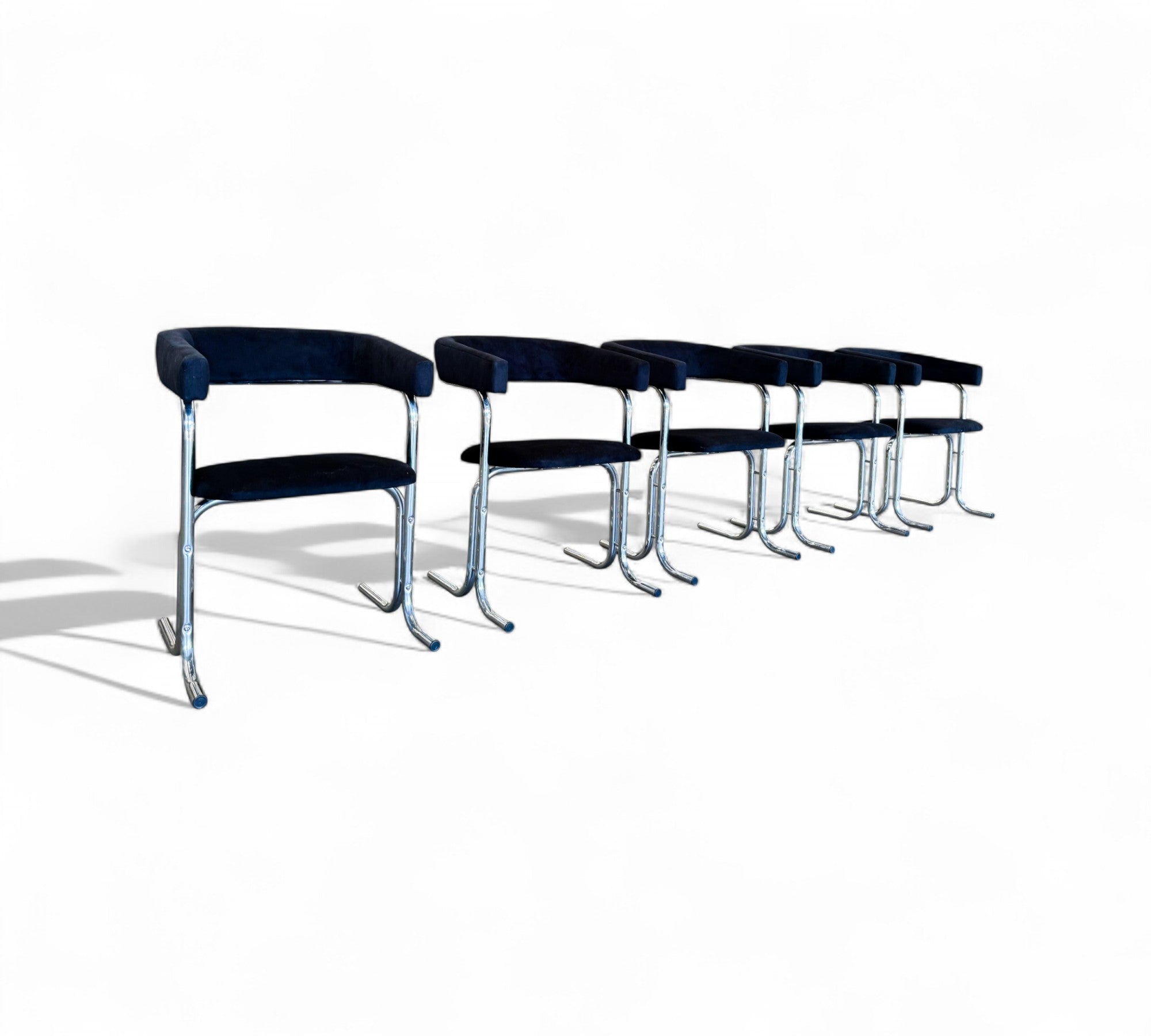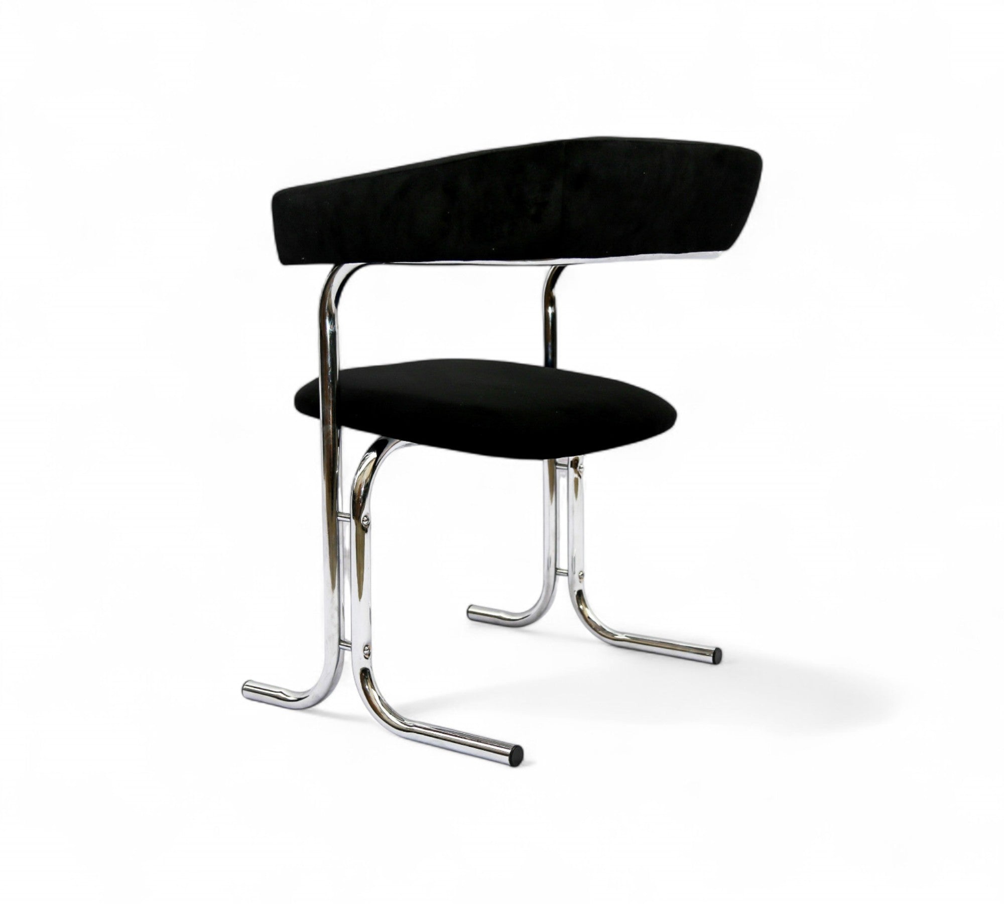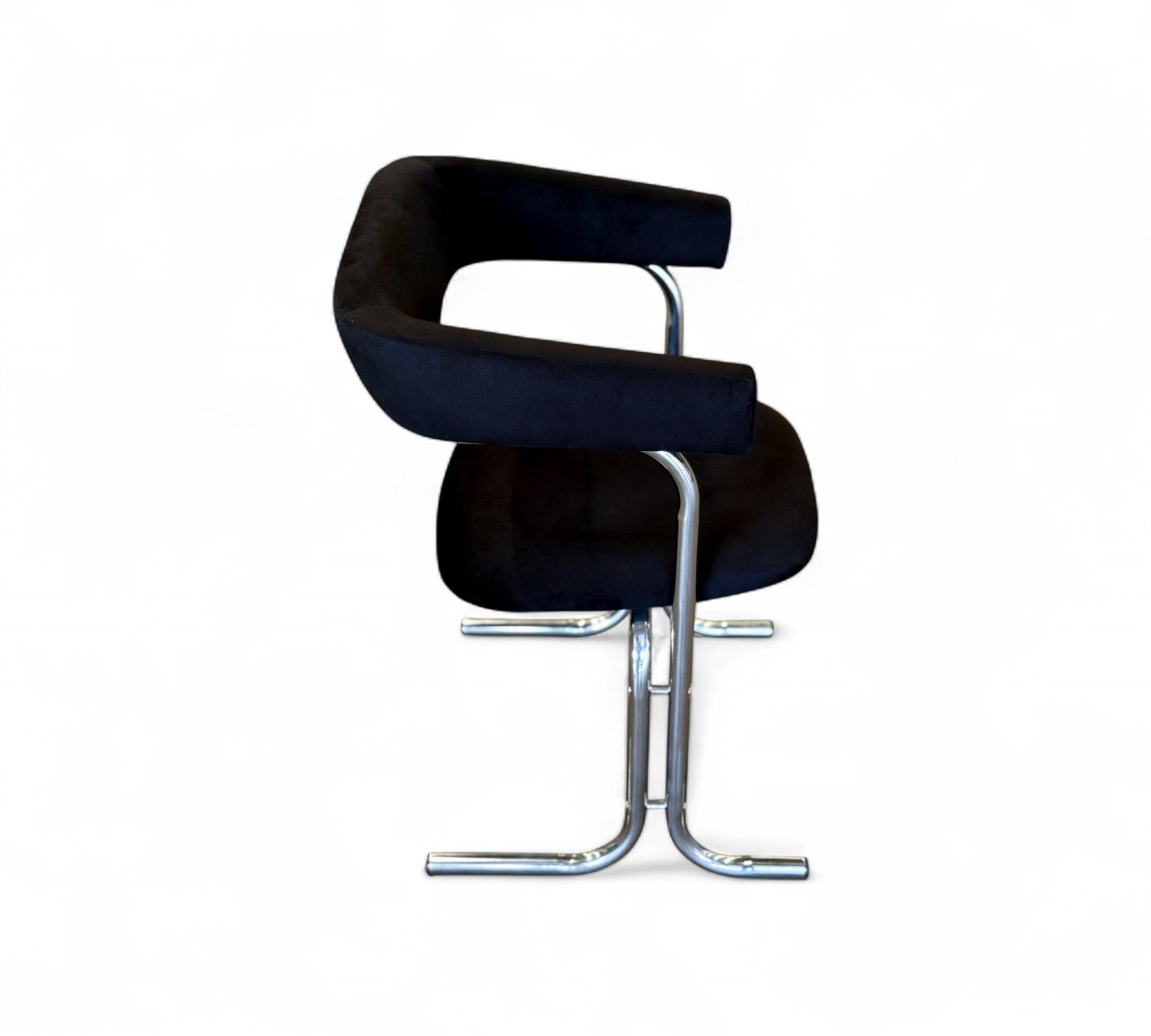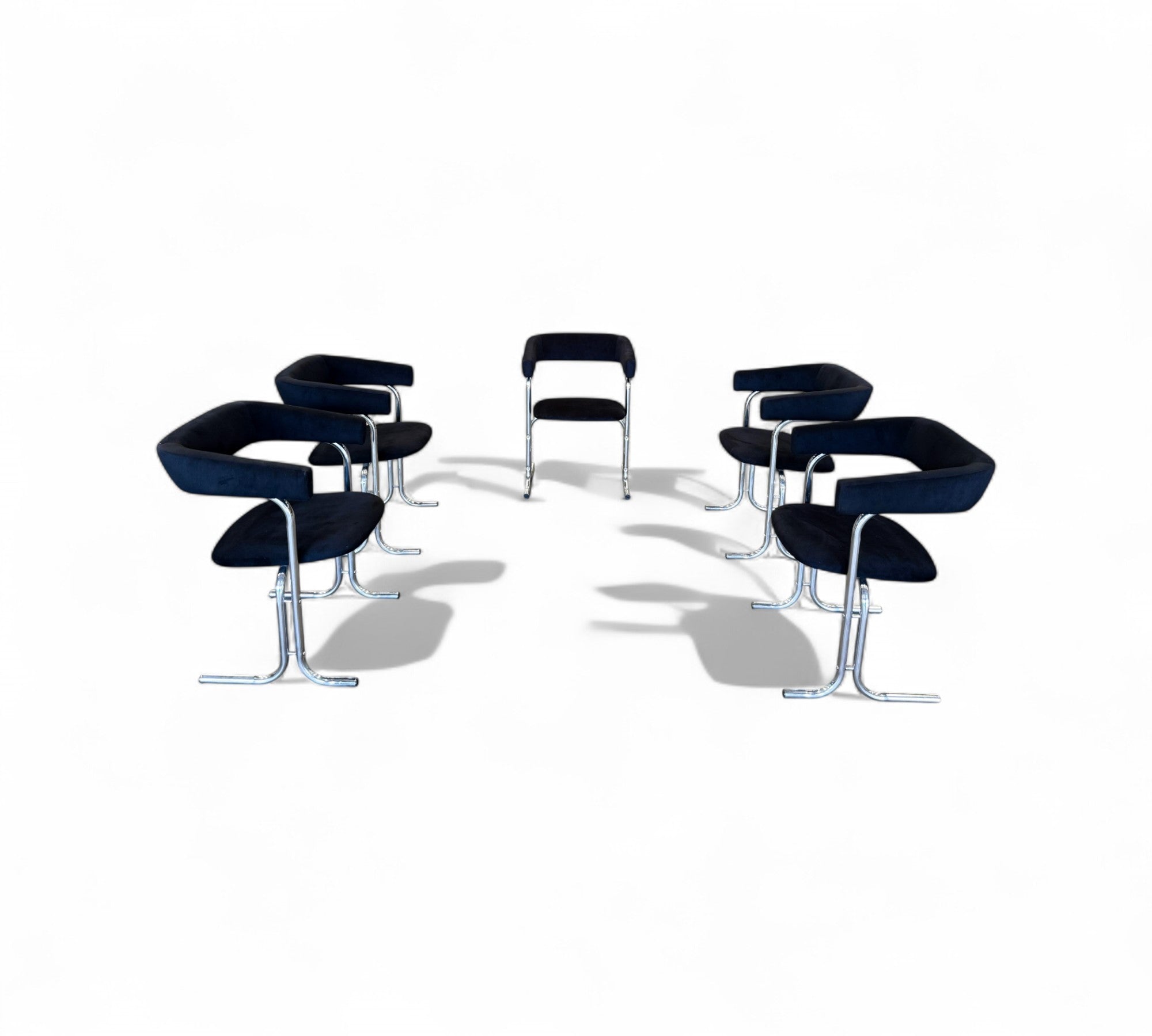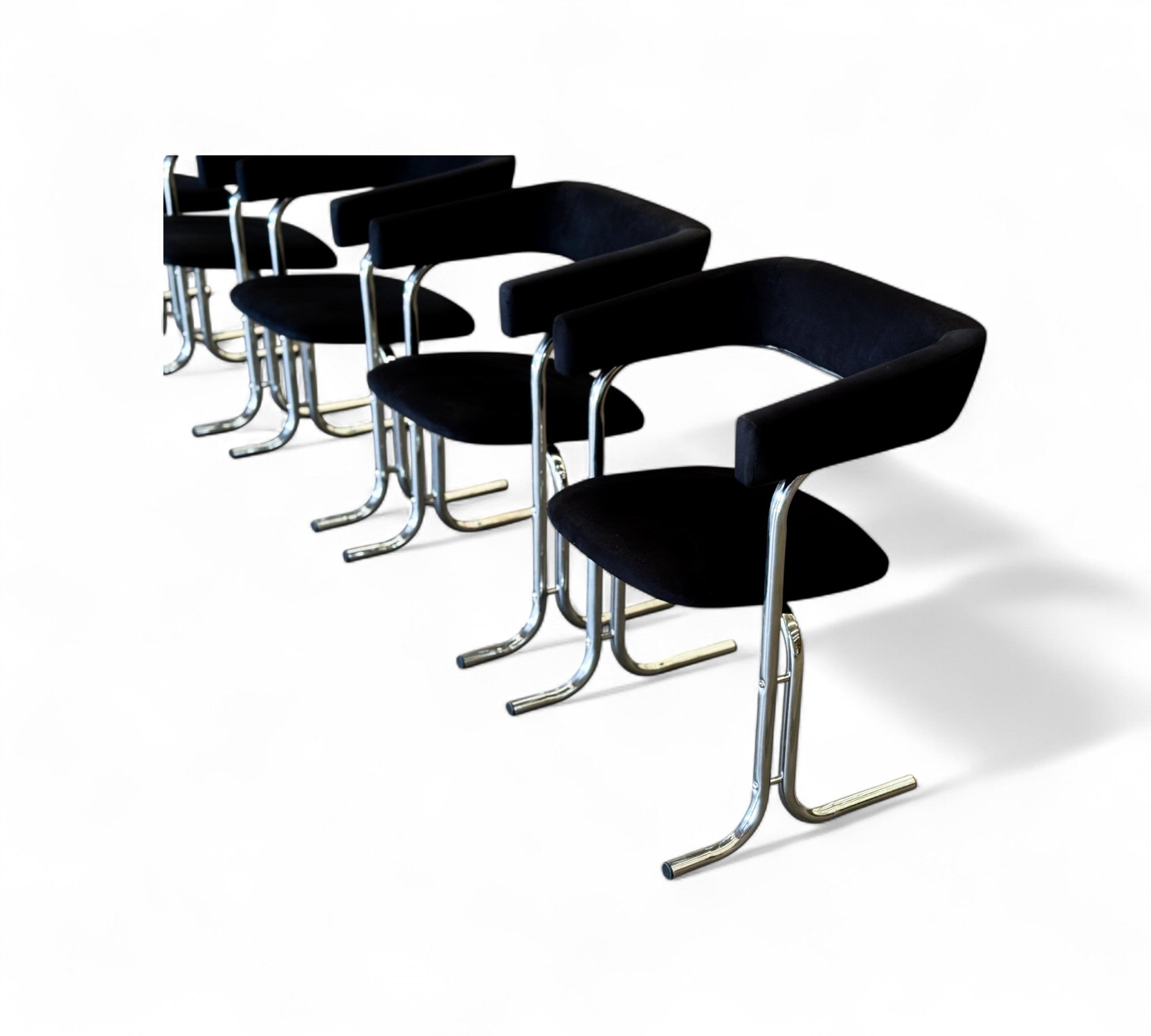 Set of Five Armchairs in Chrome and Black Fabric, Pozza Moveis, 1960s - Lot 165A