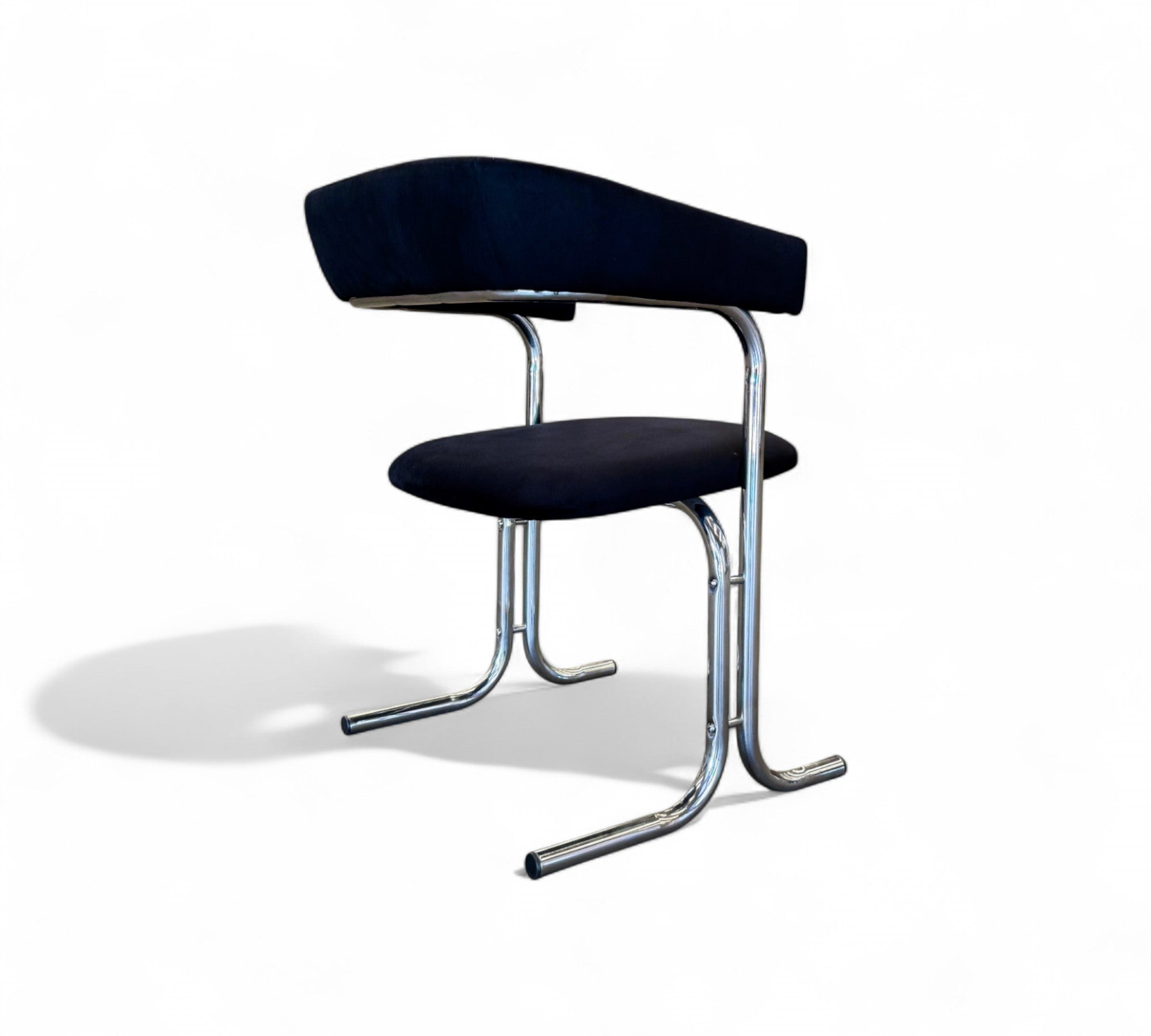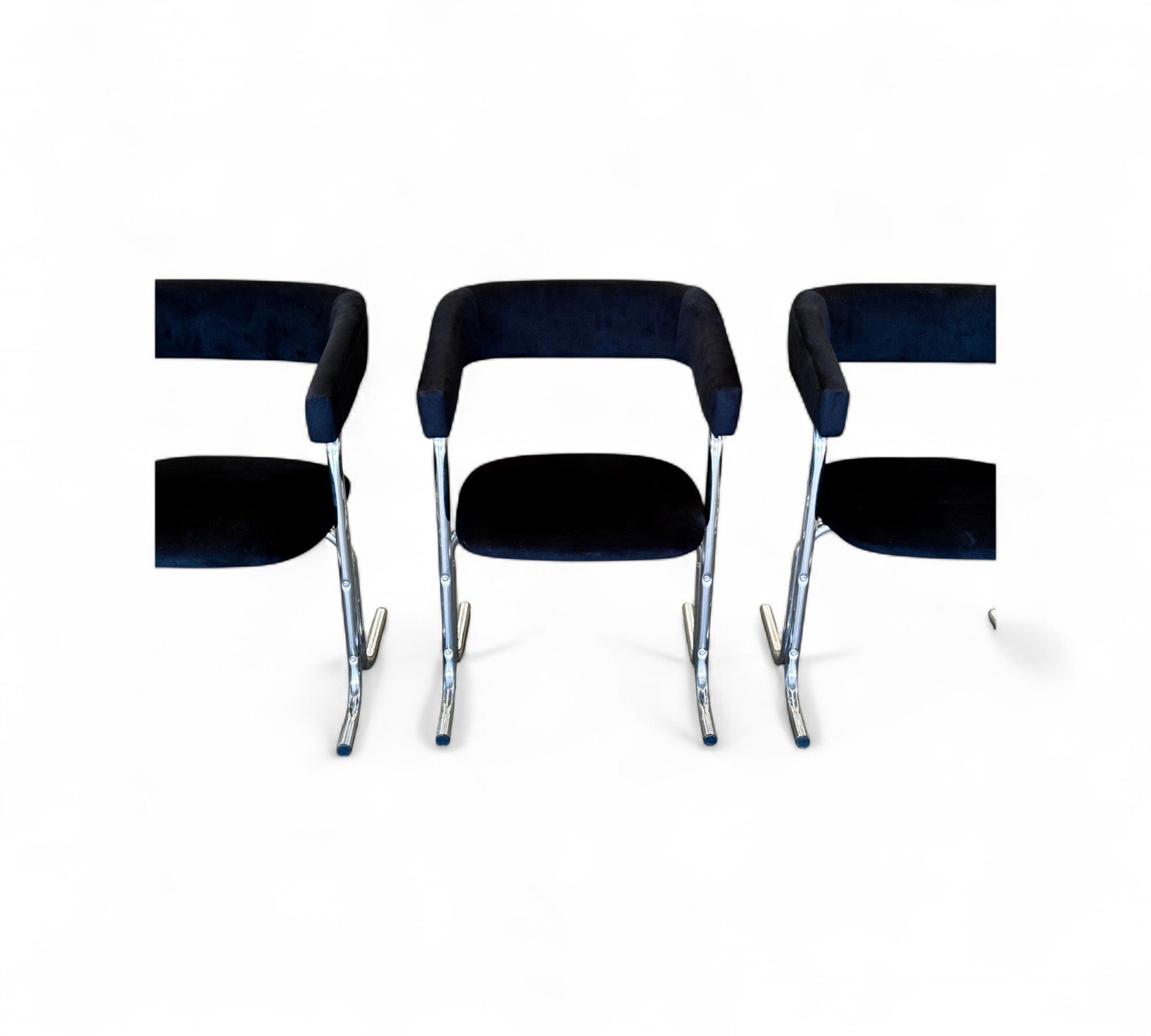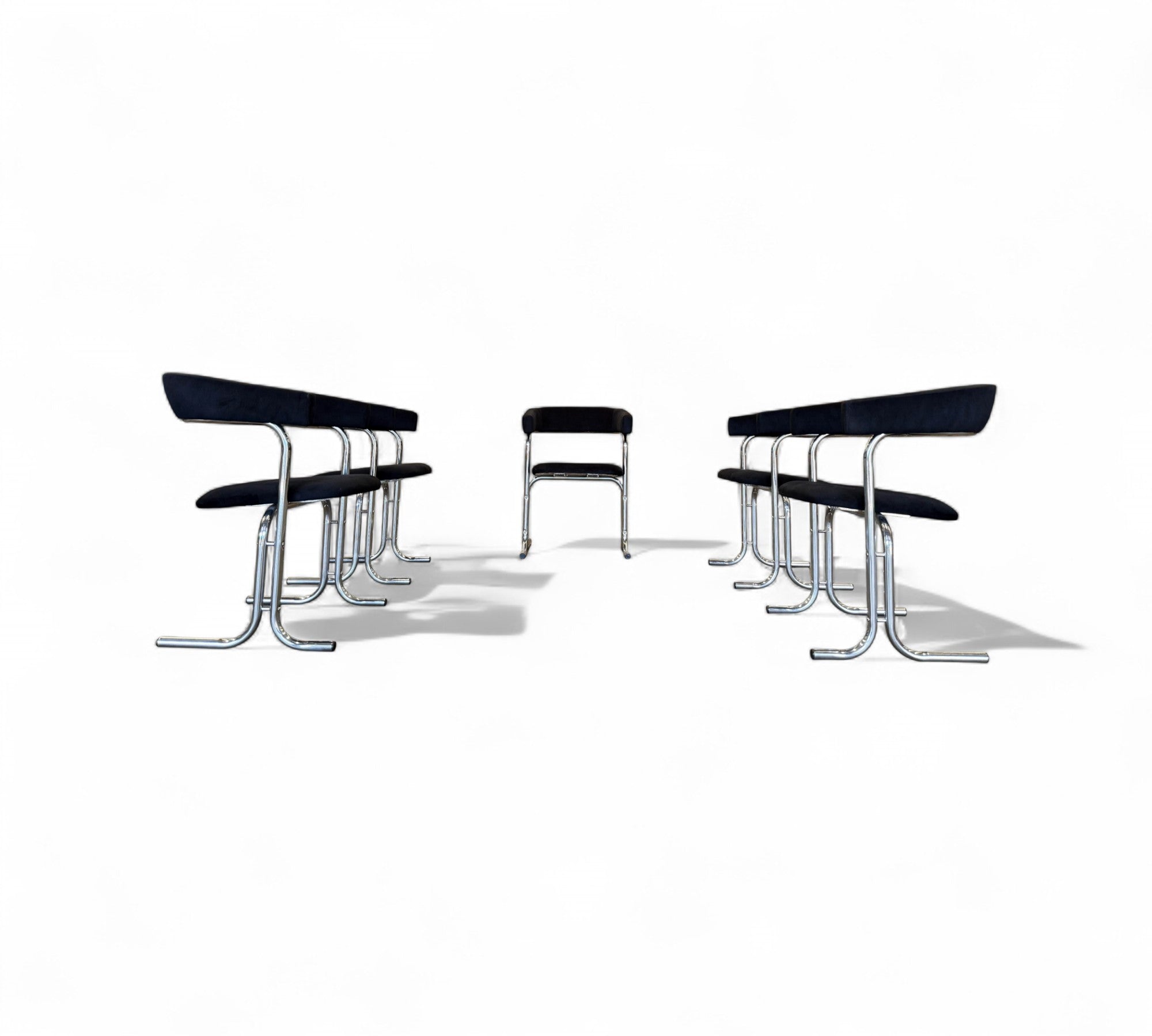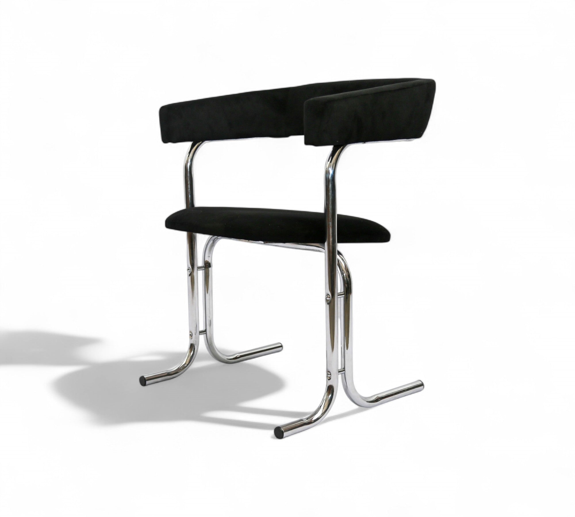 Set of Five Armchairs in Chrome and Black Fabric, Pozza Moveis, 1960s - Lot 165A