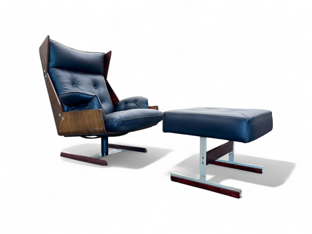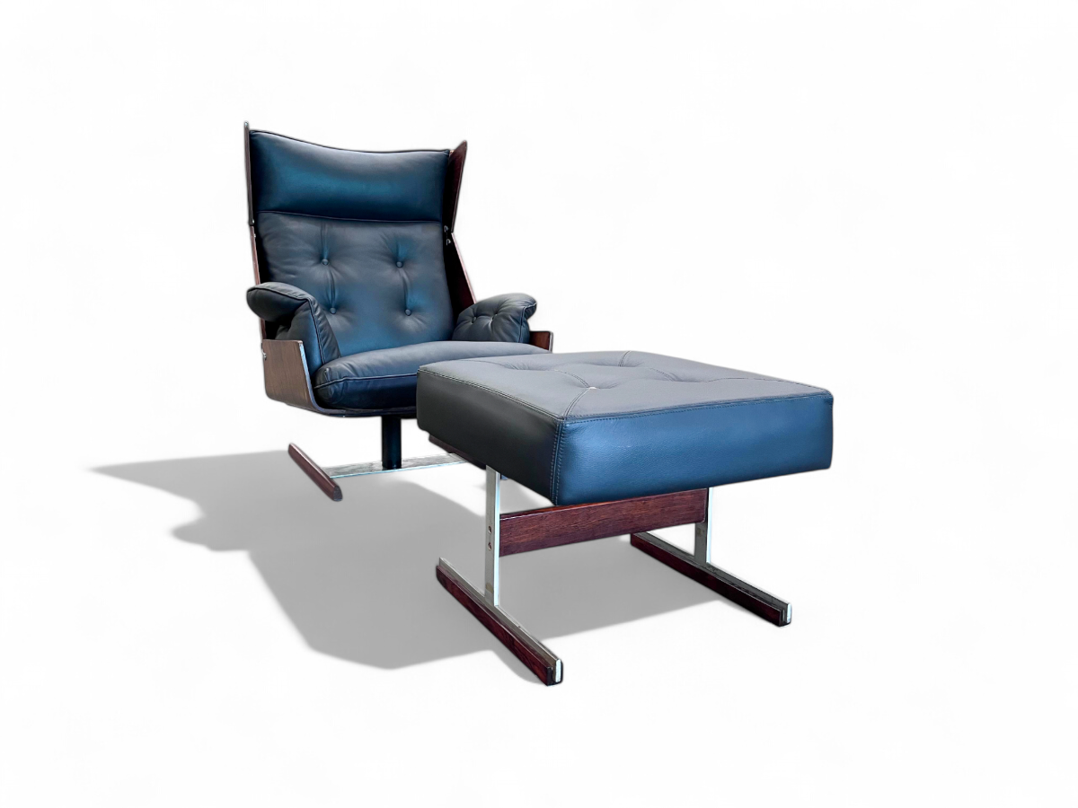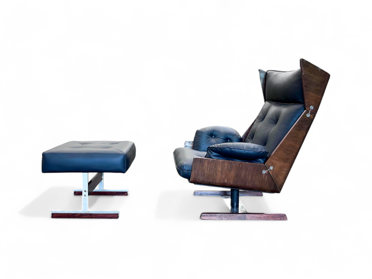 Armchair with Ottoman in Rosewood, Leather & Metal, JD Moveis, 1950s - Lot 227/619