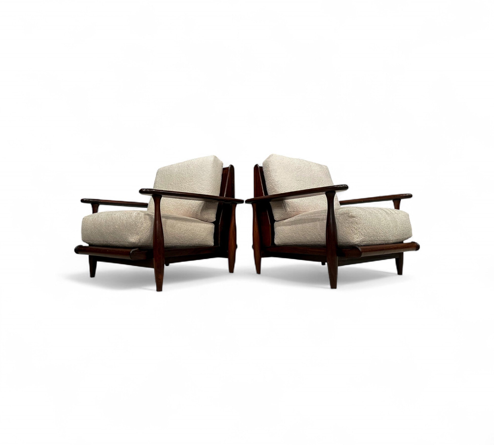 Armchairs in Rosewood & Boucle, by Martin Eisler for Forma, 1950s - Lot 238-239