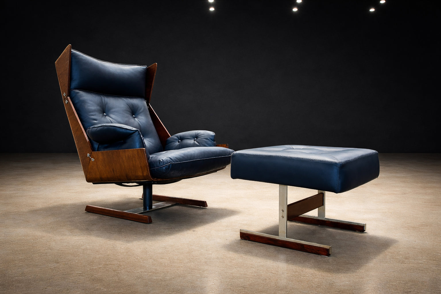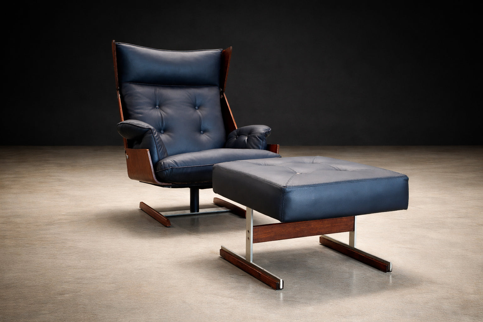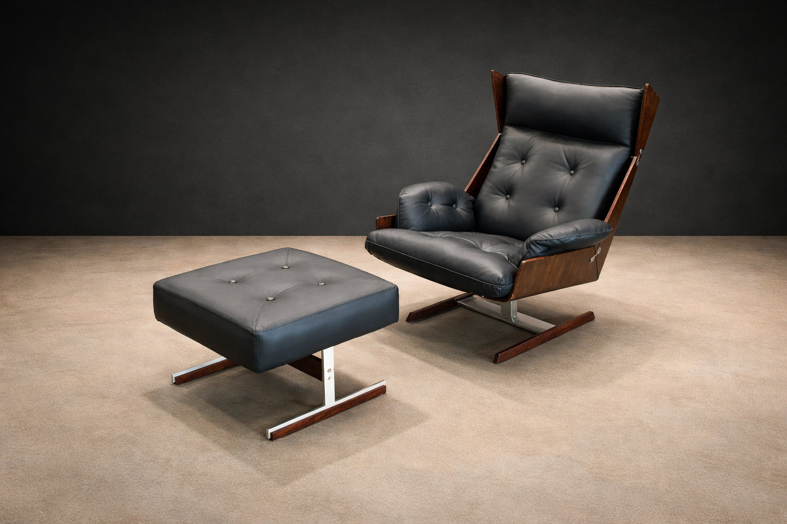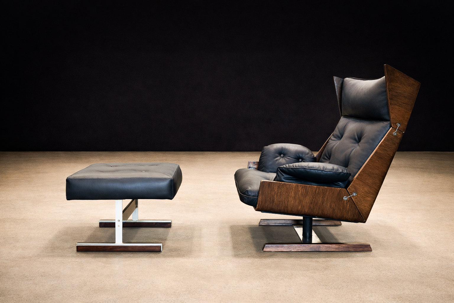 Brazilian Modern Armchair and Ottoman in Rosewood, Leather, and Metal, JD Móveis, 1960s - Lot 227