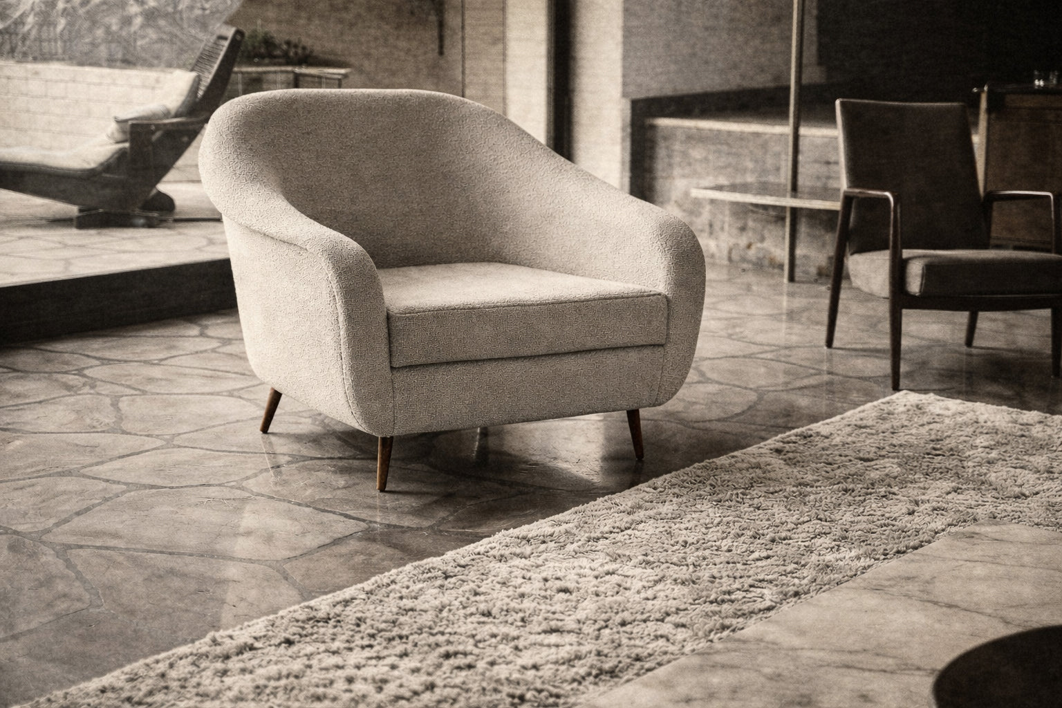Curva Armchair with Tubular Legs in Bouclé by Joaquim Tenreiro for Langenbach & Tenreiro, Brazilian Modern, 1960 – Lot 760A