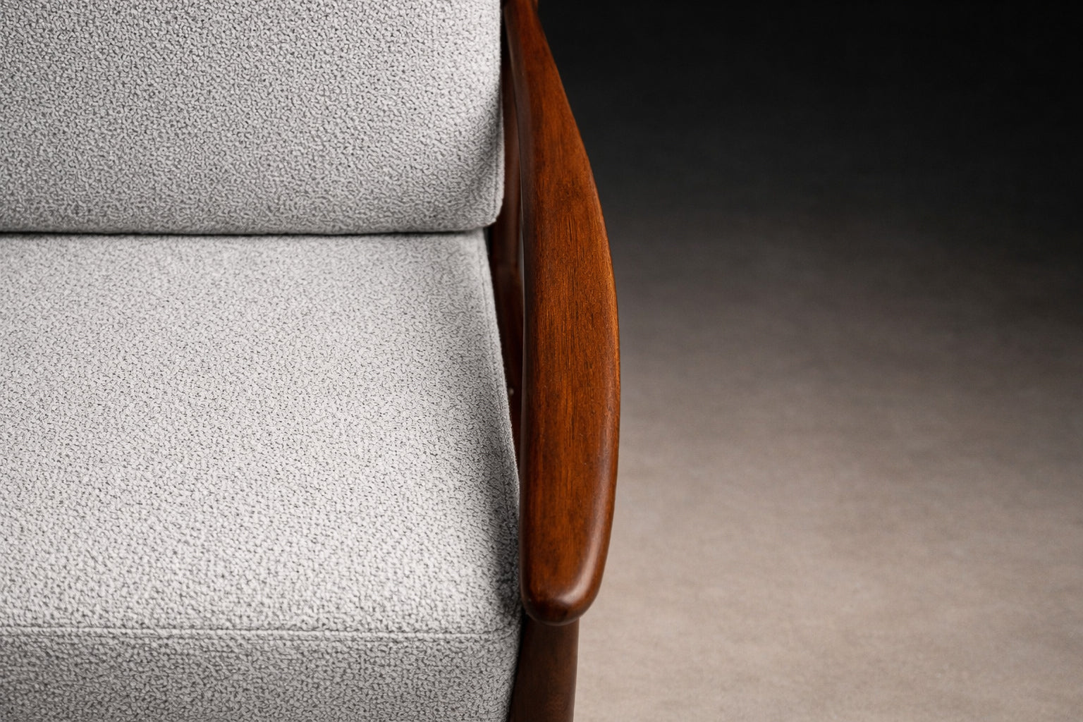 Grete Jalk Armchair in Rosewood & Light Gray Bouclé, Rino Levi, Brazil, 1960s - Lot 704A
