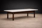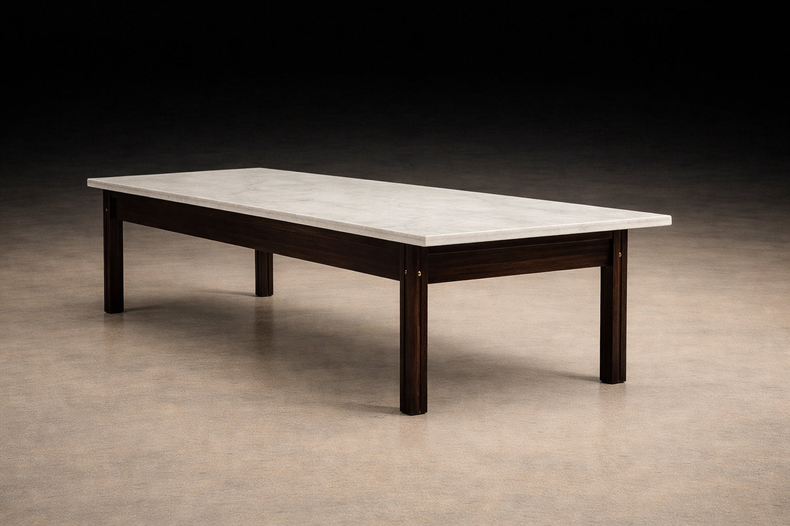 The marble top introduces a cool, tactile counterpoint, its softly honed surface enhancing the table’s horizontal clarity while maintaining a sense of lightness. The interplay between stone and hardwood speaks to a broader Brazilian Modern ethos: material honesty elevated through disciplined geometry.