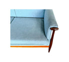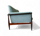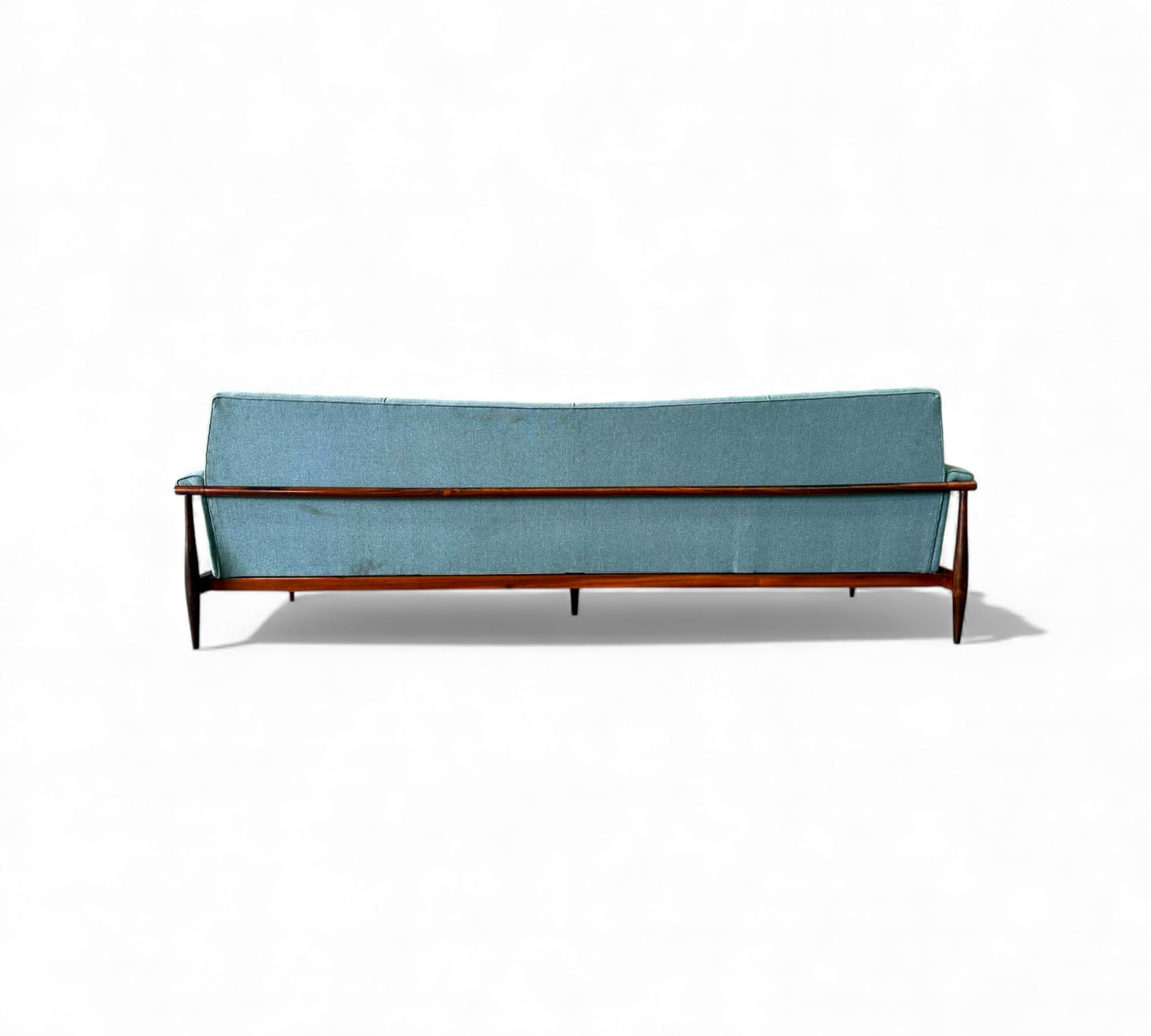 This sofa retains its original upholstery, and we can assist with reupholstery in any fabric of your choice.