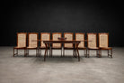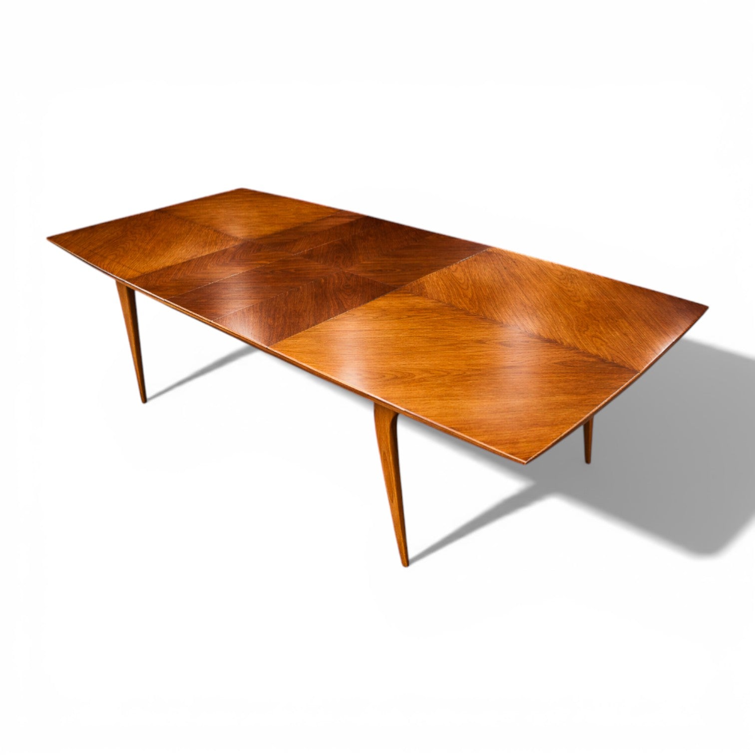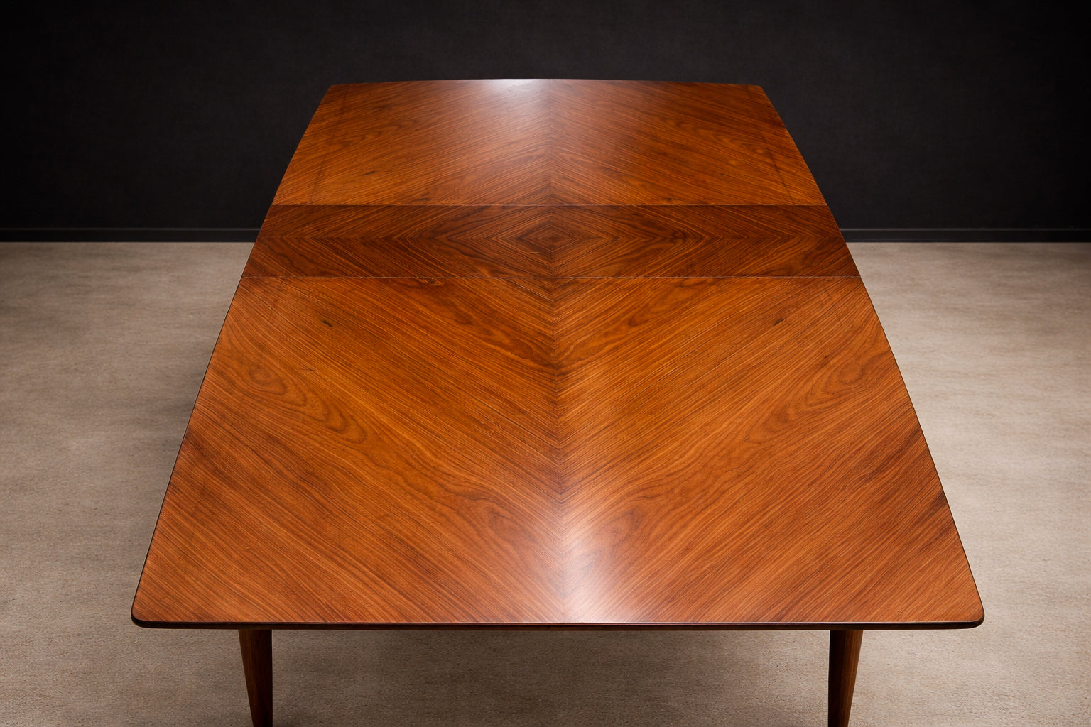 The table expands into three configurations through the use of concealed extension leaves, accommodating four, six, or up to eight diners while maintaining balanced proportions in each position. This adaptability speaks to the era’s focus on multifunctional domestic spaces, particularly in urban Brazilian homes where flexibility was essential.
