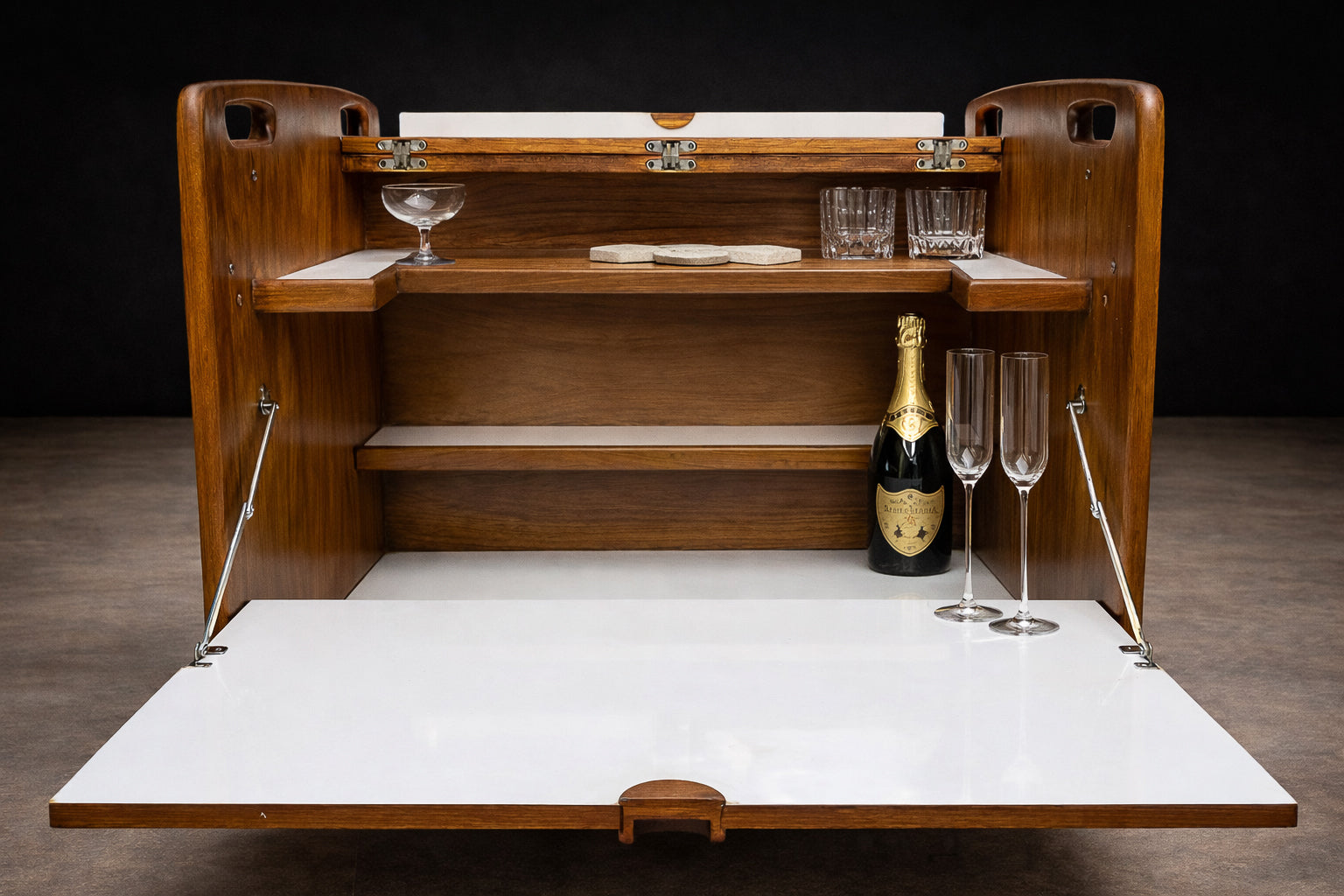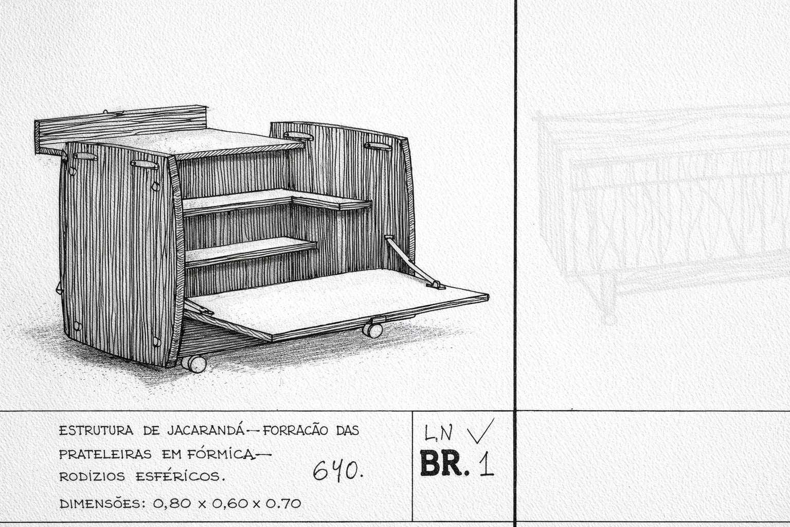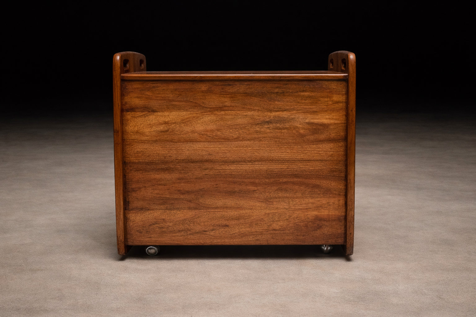 Rodrigues is widely regarded as the architect of Brazilian Modern furniture, championing native woods and relaxed forms suited to Brazil’s climate and social culture. This bar cart embodies that philosophy, offering a compact yet highly practical solution for entertaining without sacrificing sculptural presence.