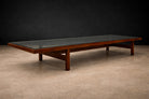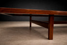 Designed in the 1950s by Joaquim Tenreiro, this large coffee table is a refined example of Tenreiro’s structural and material clarity. Crafted entirely from Brazilian rosewood (Jacarandá), the table is defined by four slender legs connected by horizontal wooden stretchers, creating a visually balanced and architecturally grounded composition.