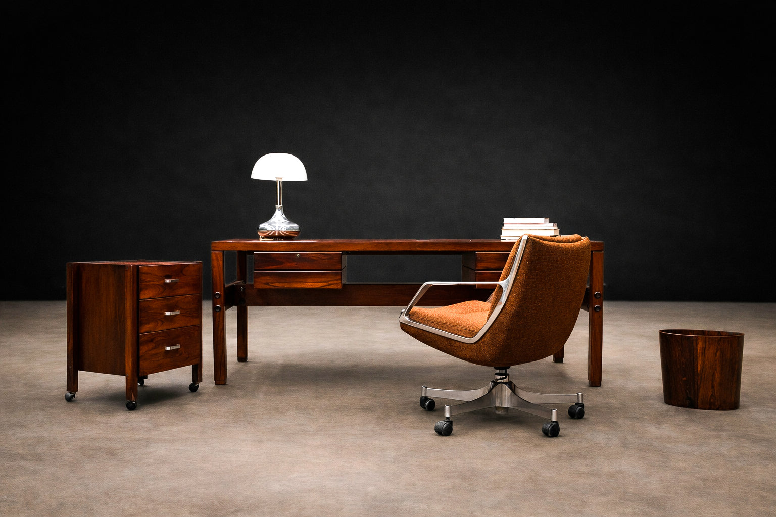 Designed by Jorge Zalszupin (1922–2020) and introduced in 1973, the “Low Commander” armchair emerged during a pivotal moment in Brazilian modernism, when industrial materials and contract production began redefining the language of seating. Conceived in response to Brazil’s expanding office and commercial interiors market, the Commander series reflects Zalszupin’s disciplined synthesis of sculptural clarity and functional precision.