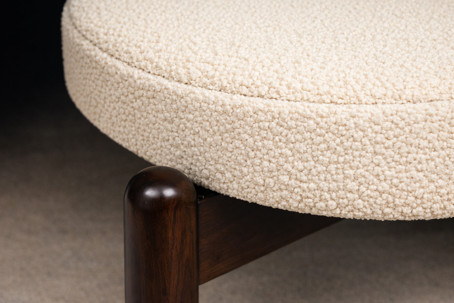 Hardwood with ebony finish. Boucle.