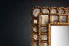 Handcrafted in hardwood with applied plaster and gold leaf sheets, the frame displays a deeply textured, rhythmic relief that catches light with remarkable depth and warmth. The original mirror plate remains intact, further enhancing the authenticity and period integrity of the piece.