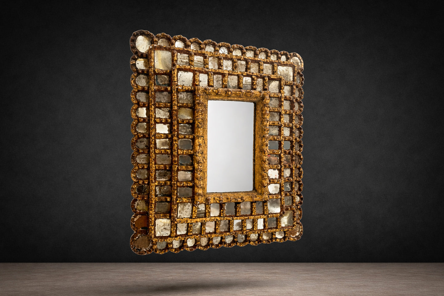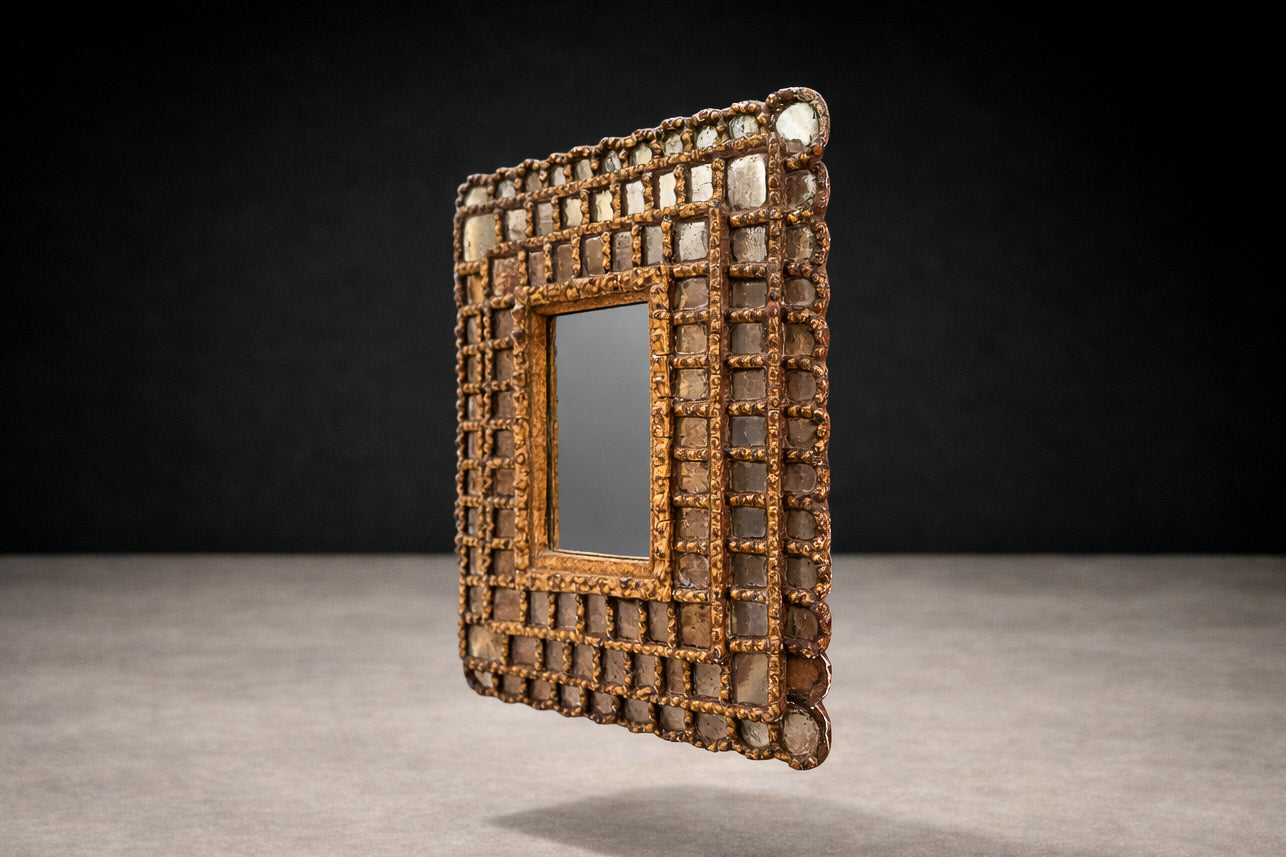 A highly decorative and sculptural wall piece, this mirror works effortlessly in layered traditional interiors, Spanish Colonial and Mediterranean settings, as well as contemporary spaces seeking historic contrast and artisanal character.