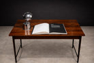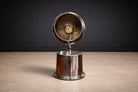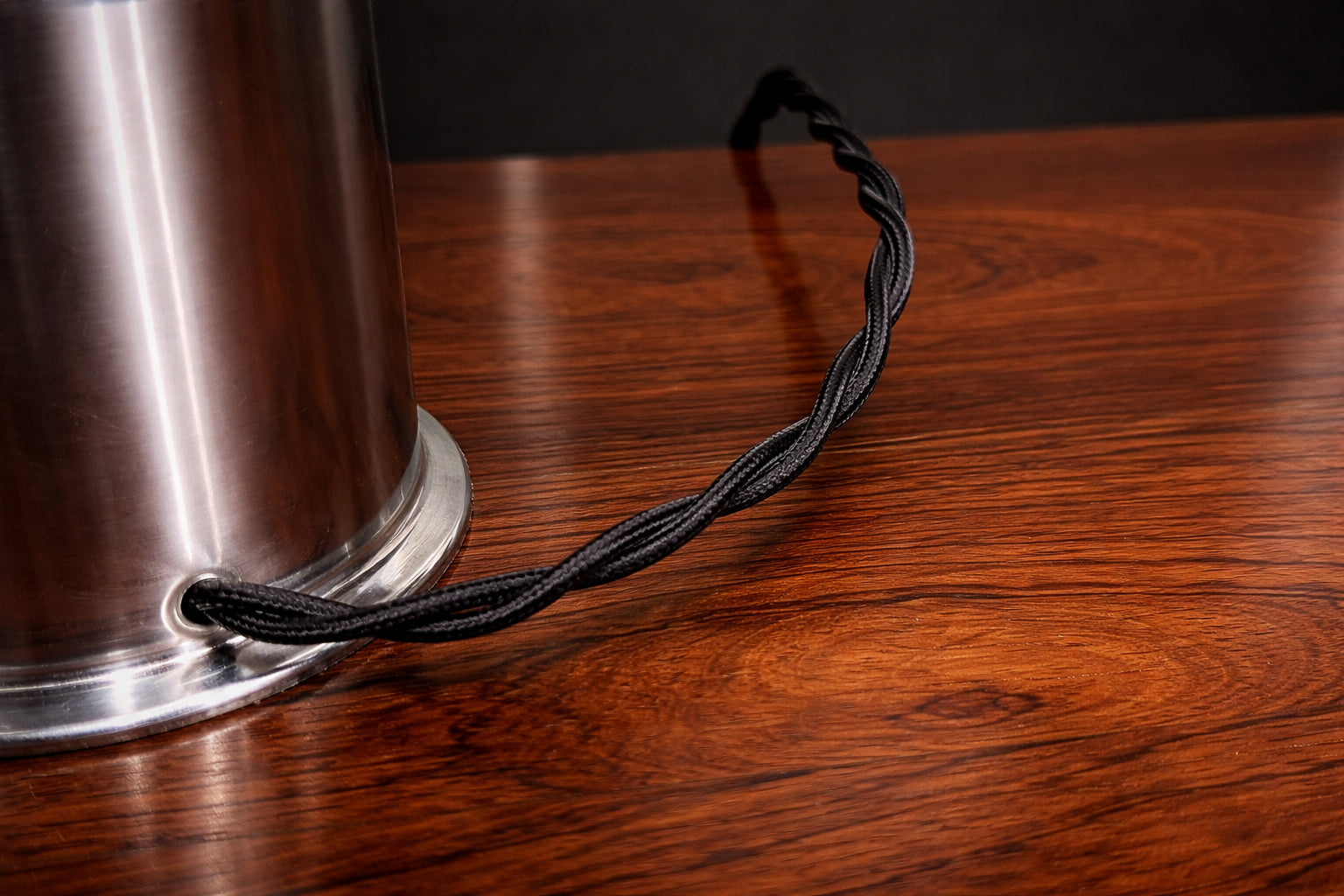Fully rewired for contemporary safety and functionality, the lamp maintains its original architectural presence while meeting modern electrical standards. The adjustable head rotates a full 360 degrees, allowing directional light and flexible placement—equally suited for a desk, console, or bedside setting.