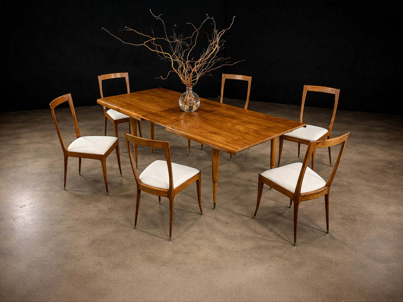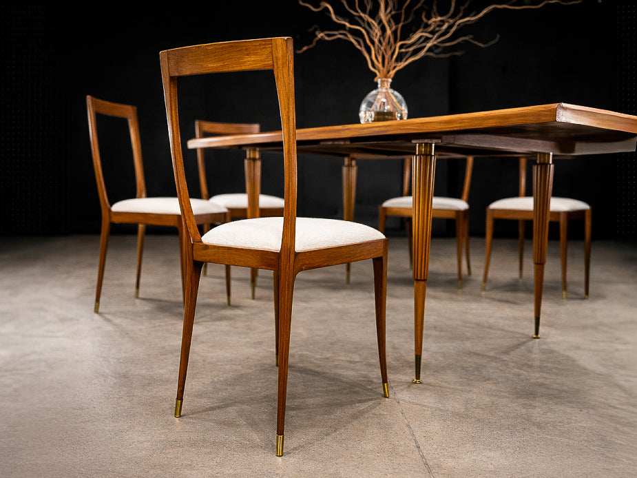 Originally sourced from a private residence in Rio de Janeiro, Brazil’s former capital, this set reflects the sophisticated domestic interiors of the period, where artisanal craftsmanship met modern design language. Elegant yet restrained, these chairs are equally suited for formal dining settings or curated interiors seeking sculptural presence and historical depth.