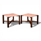 The tops are clad in vibrant pink granite — a bold and distinctly Brazilian material choice — showcasing organic movement, mineral variation, and tonal warmth. The stone remains in excellent condition, retaining its natural depth and subtle polish without appearing overly restored. Together, rosewood and granite form a striking dialogue between warmth and permanence, texture and precision.