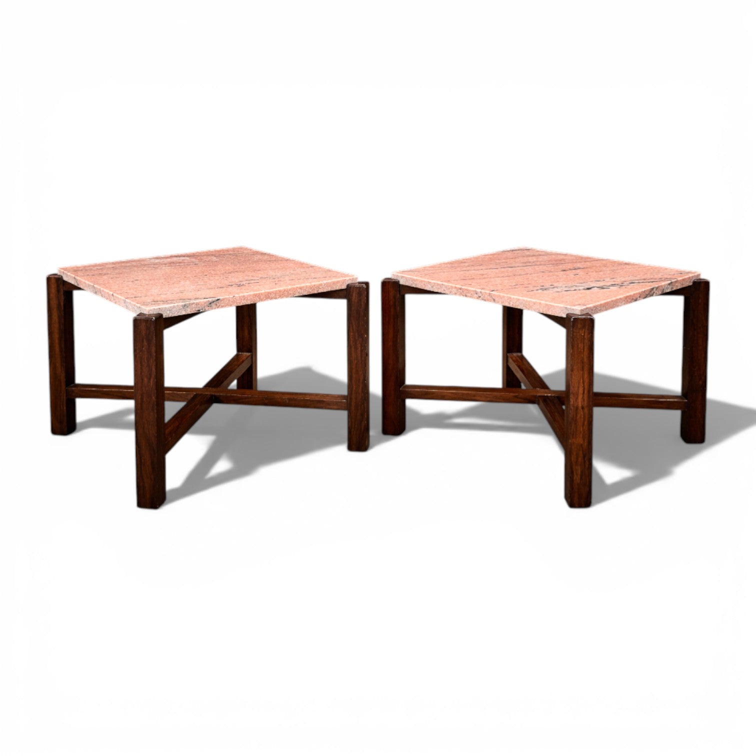 Pair of Brazilian Rosewood & Pink Granite Side Tables, Brazil, 1960s — Lot 675
