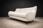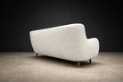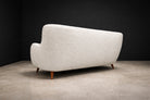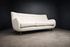 Designed in the 1950s by Giuseppe Scapinelli, this sofa is a strong expression of his organic modern vocabulary. The hardwood structure has been fully reinforced, ensuring long-term stability while preserving the original proportions and sculptural intent. Four slender legs support a softly contoured frame defined by fluid curves and an inviting silhouette.