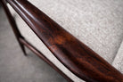 Designed in the 1950s by Giuseppe Scapinelli, this sofa is a strong expression of his organic modern vocabulary. The rosewood structure has been fully reinforced, ensuring long-term stability while preserving the original proportions and sculptural intent. Four slender legs support a softly contoured frame defined by fluid curves and an inviting silhouette.