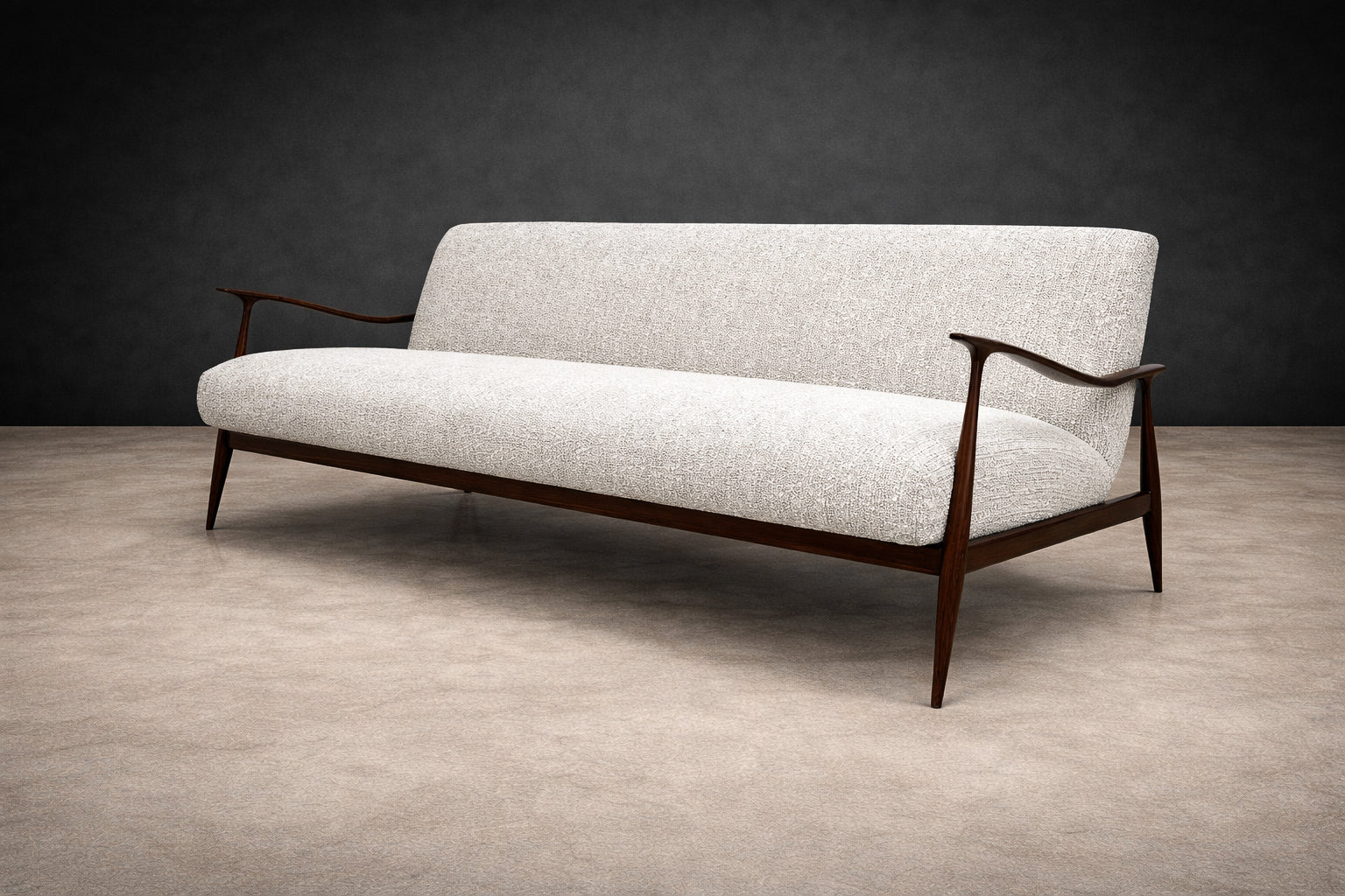 Sofa in Rosewood and Ivory Bouclé by Giuseppe Scapinelli, Brazil, 1950s - Lot 449B