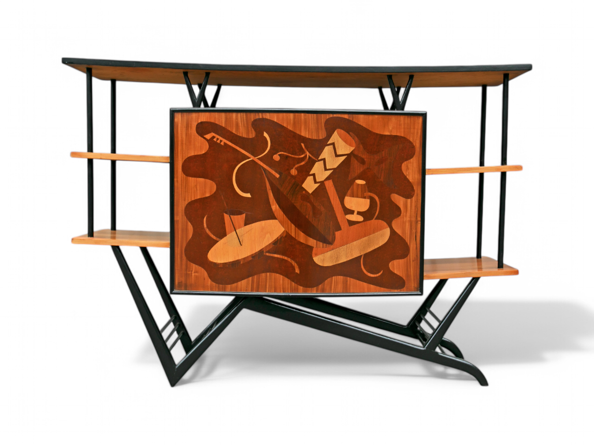 Bar in Three Woods & Party Motif Marquetry, Unknown, 1950s  - Lot 230