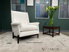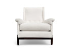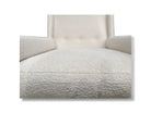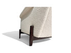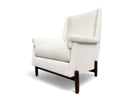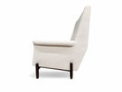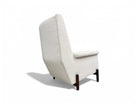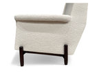 This chair features legs and a body made of Brazilian Rosewood, with seats upholstered in super soft and cozy off white boucle. The wood has been refinished and is in excellent condition. The backrest is angled for comfort, and the cushions are exceptionally soft, making the chair very comfortable.