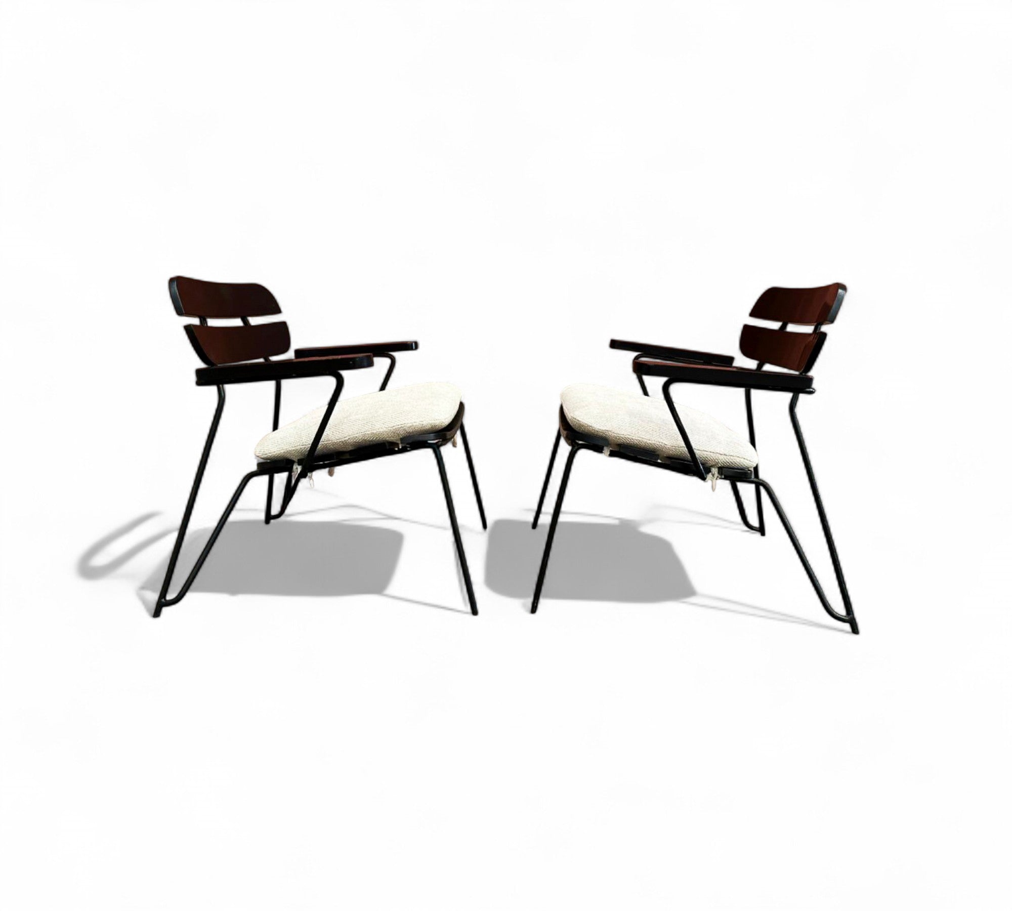 Armchairs in Ebonized Wood & Metal, Carlo Hauner, 1950s - Lot 305