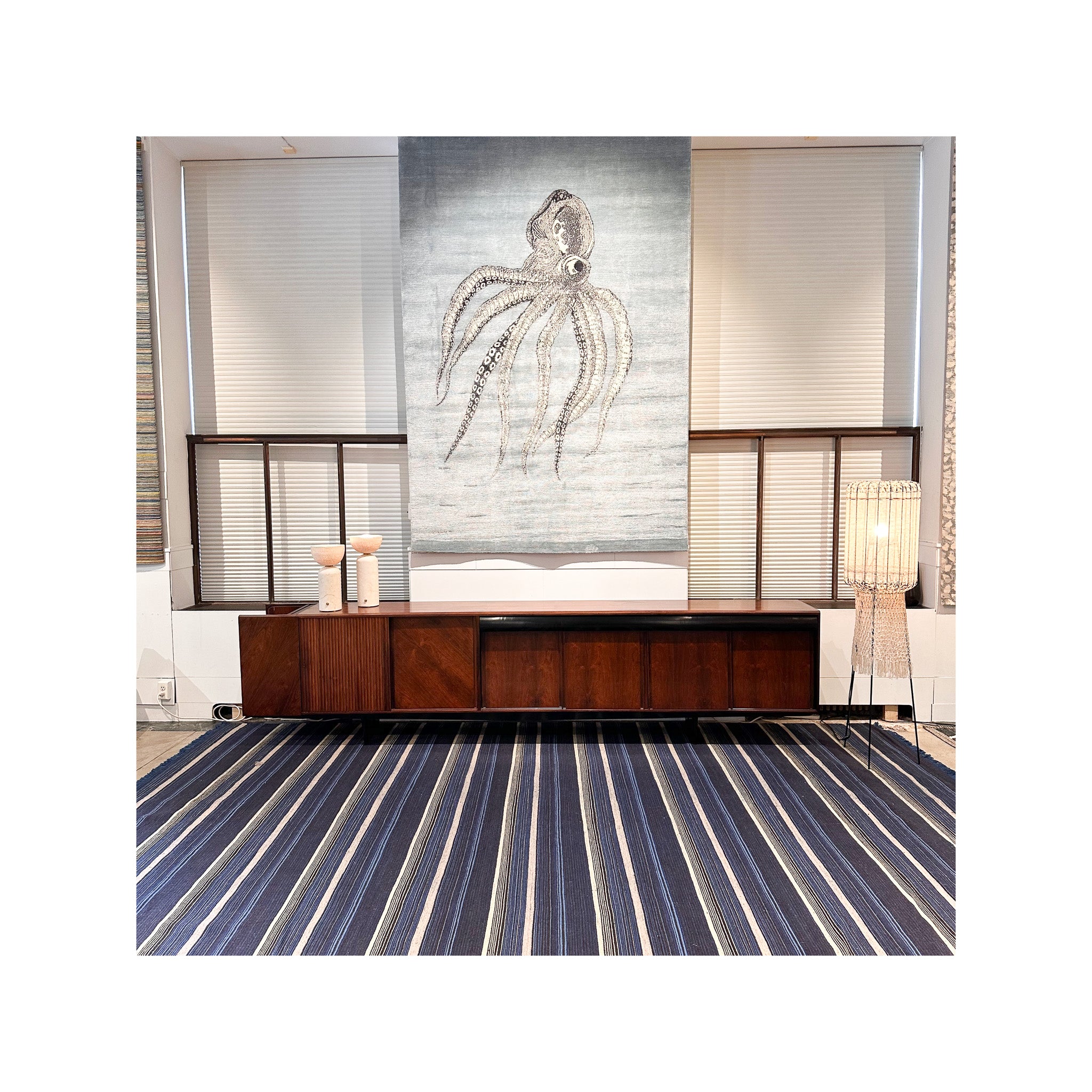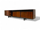 The wood has been expertly refinished, revealing stunning veins throughout the entire piece. Despite some age marks, the credenza is in excellent condition. The manufacturing seal is located on the back of the credenza. This piece belonged to a private collection in Rio de Janeiro.