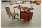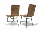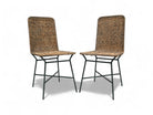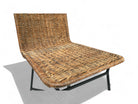 This pair of wicker chairs showcases an iron structure painted in sleek black, adding a touch of modernity to their design. One chair is displayed alongside a Geraldo de Barros desk, creating a stunning ensemble that highlights their aesthetic appeal. Versatile and stylish, these chairs would enhance any modern, mid-century modern, or contemporary environment with their distinctive blend of materials and timeless design.