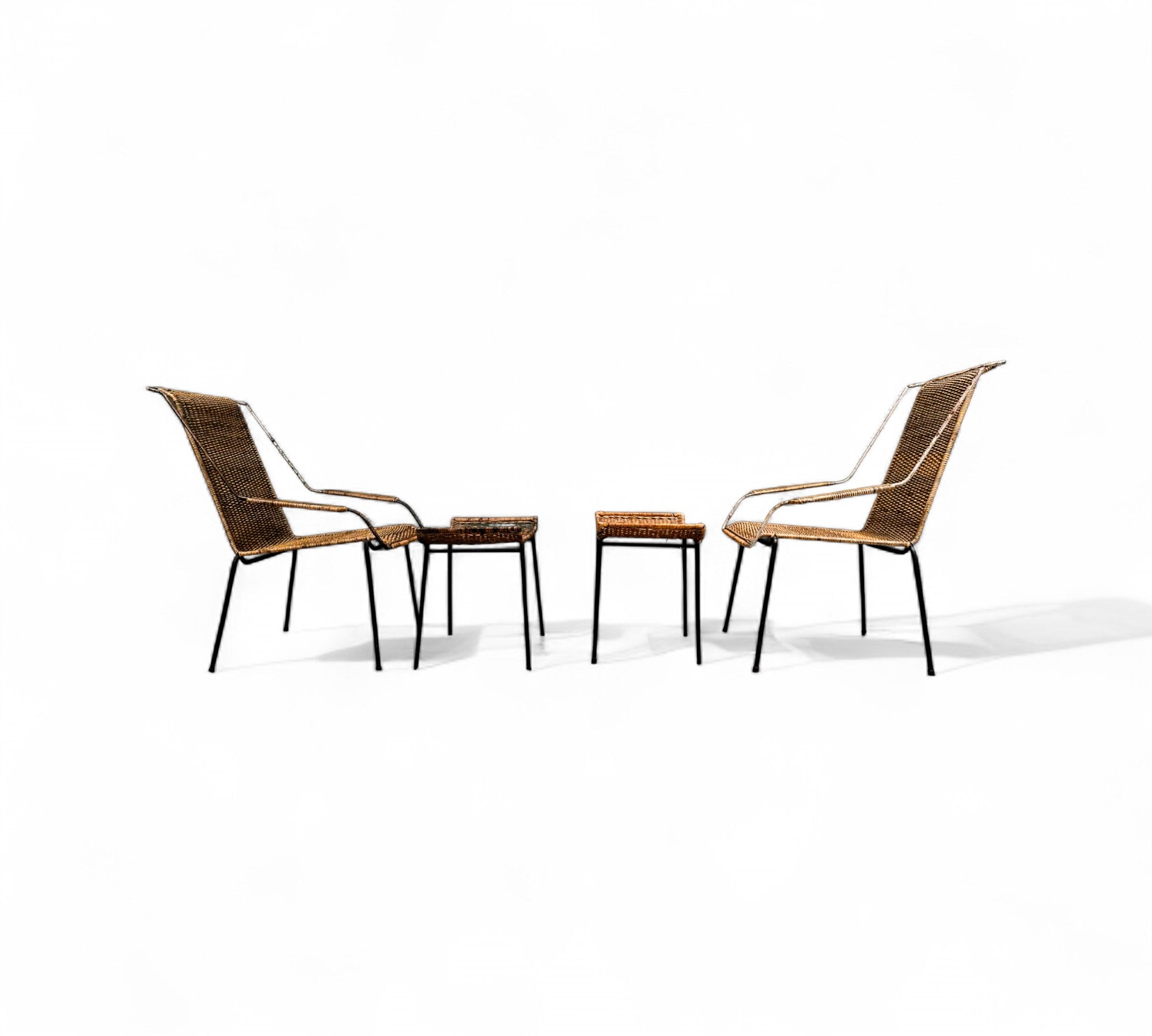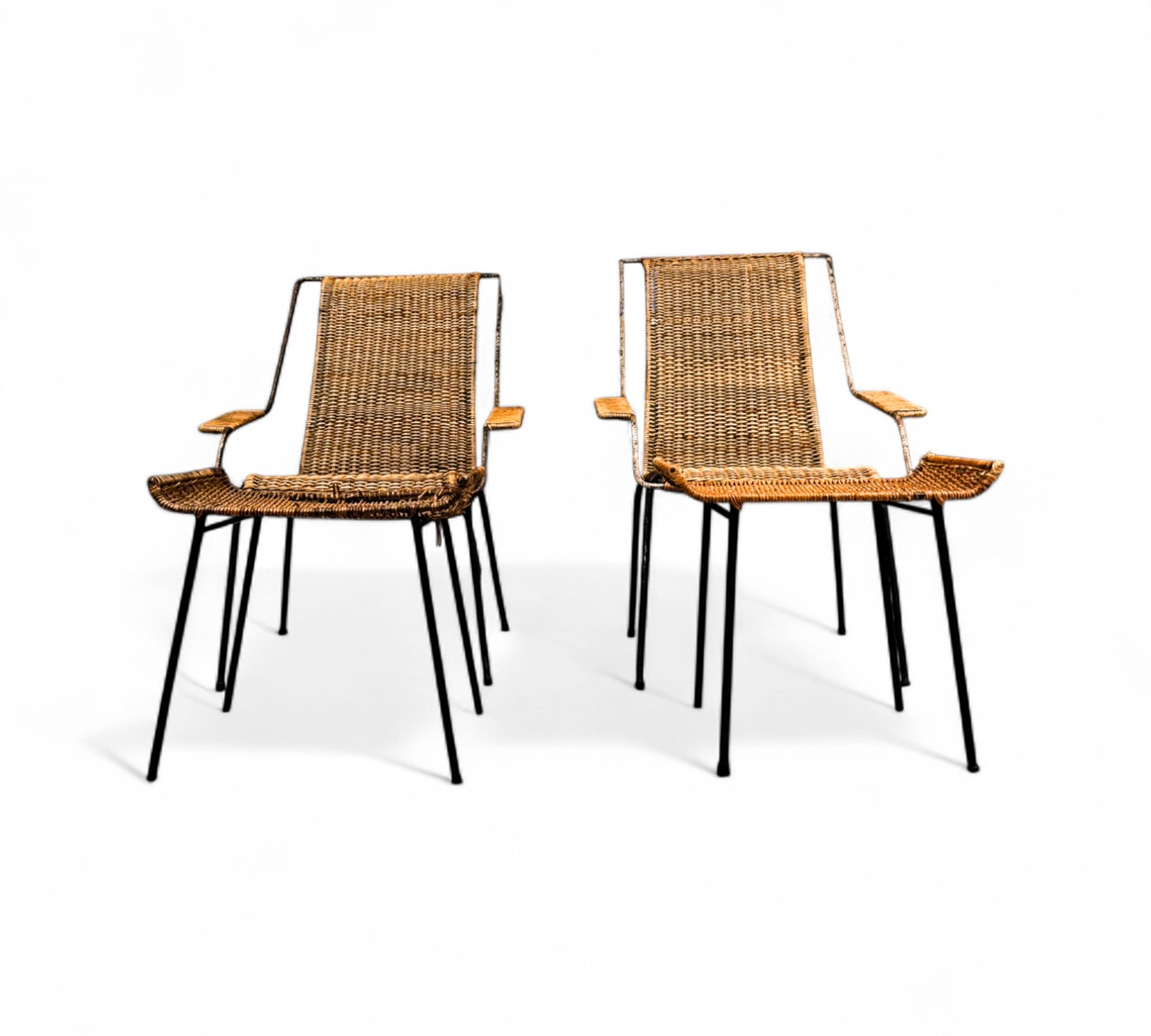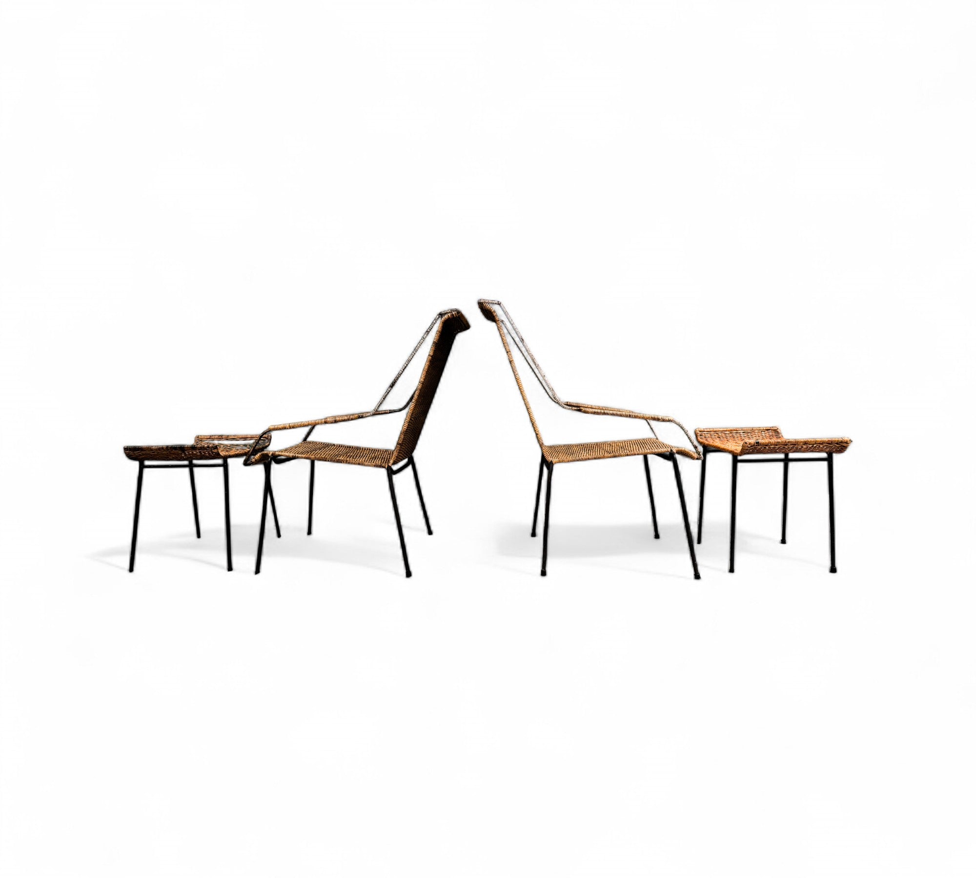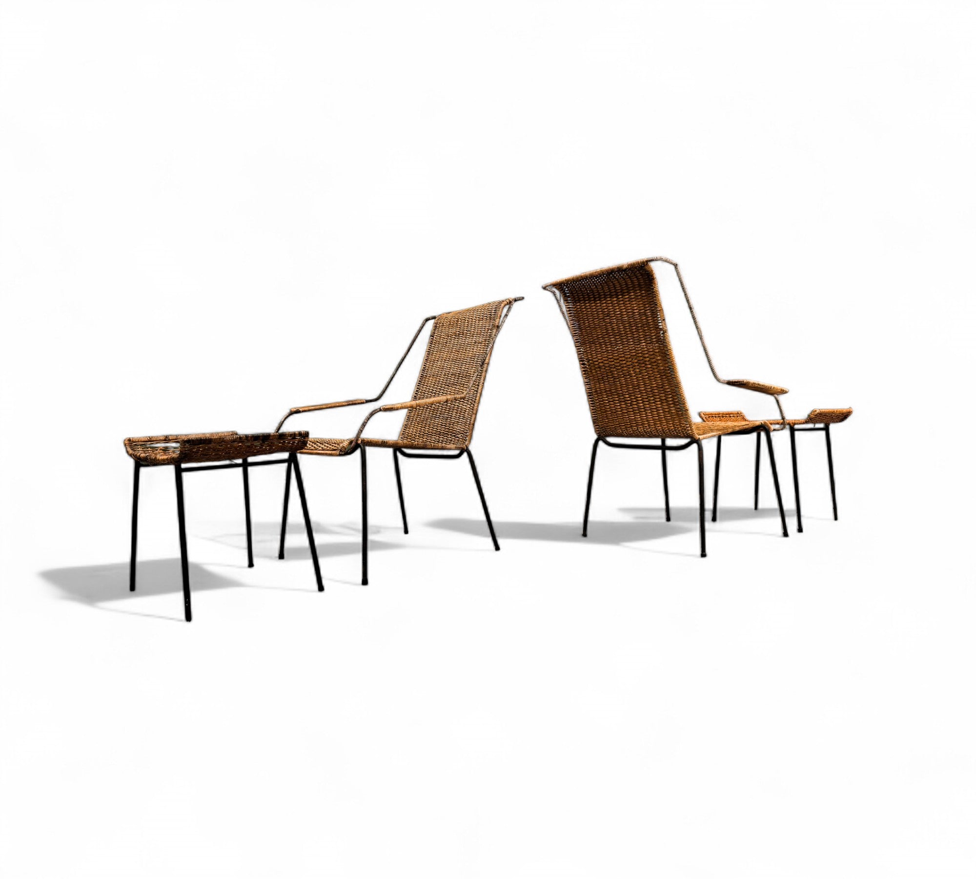Pair of Armchairs with Stools in Cane & Iron, Carlo Hauner, 1950s - Lot 232A