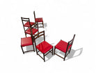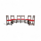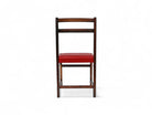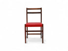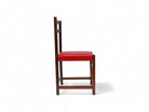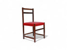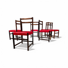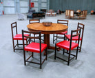 This set of six chairs is crafted from exquisite Brazilian rosewood, also known as Jacaranda. The seats are upholstered in vibrant red leather, creating a stunning contrast with the rich wood tones. The rosewood has been expertly refurbished and is in excellent condition. The bold red leather not only adds a pop of color but also perfectly complements the Brazilian rosewood, making these chairs a standout addition to any dining space.
