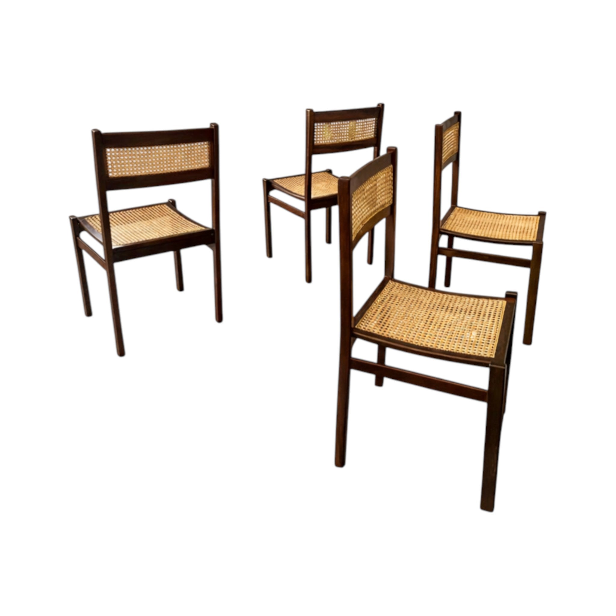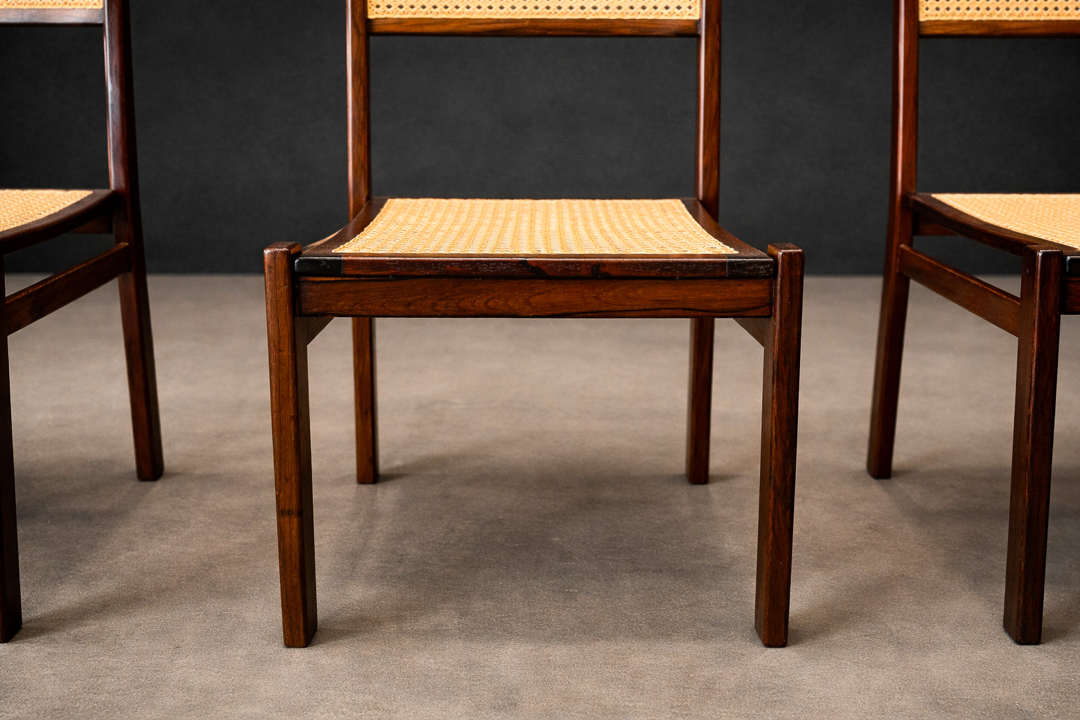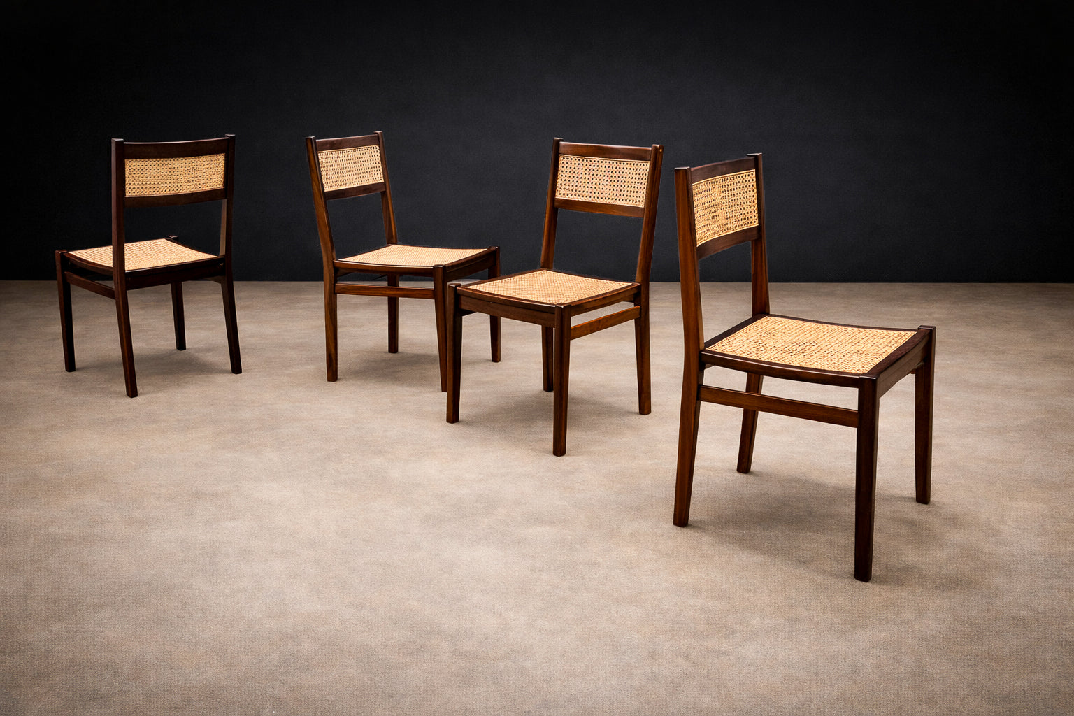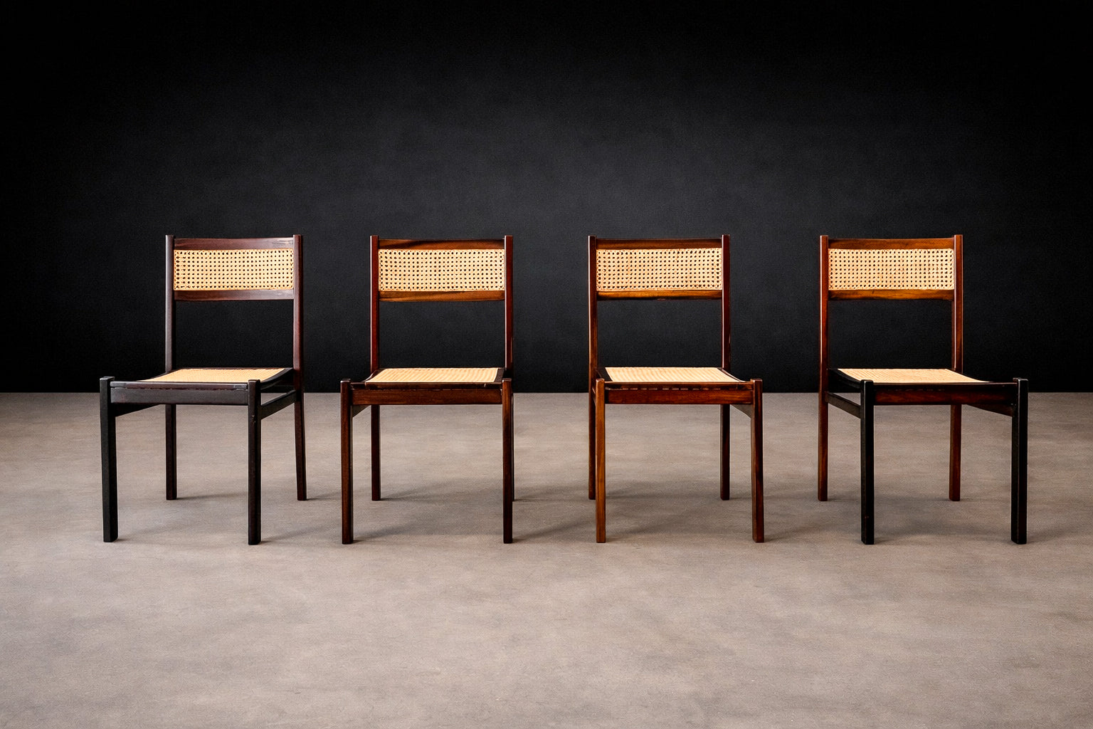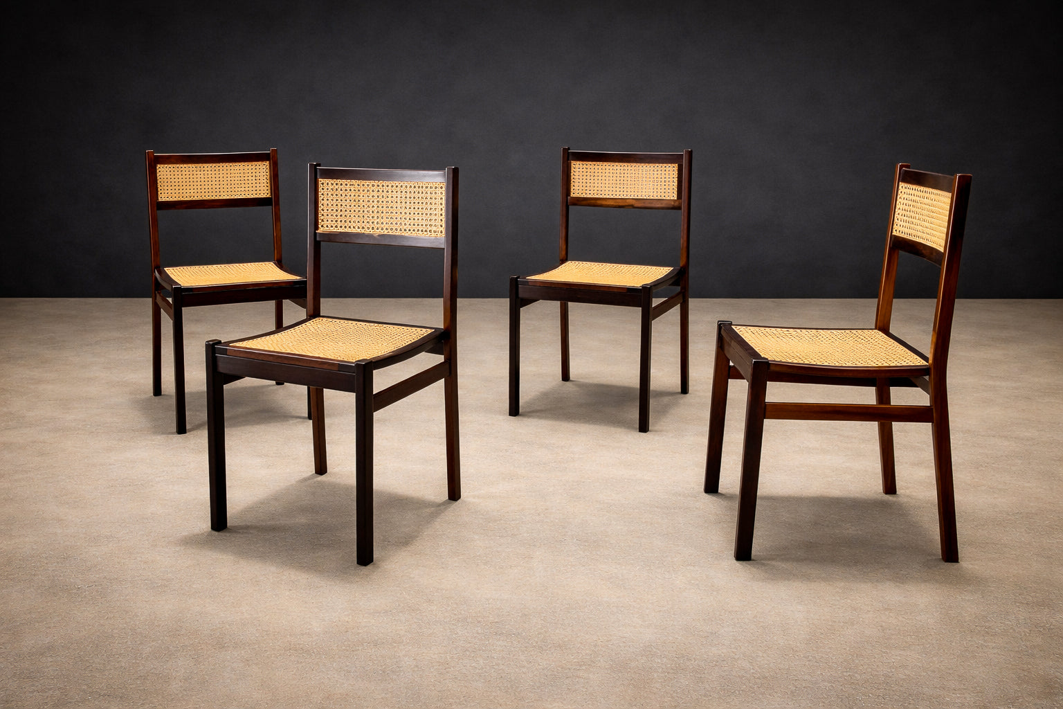 Brazilian Modern Set of Four Rosewood & Cane Dining Chairs by Celina, Brazil, 1960s - Lot 564B