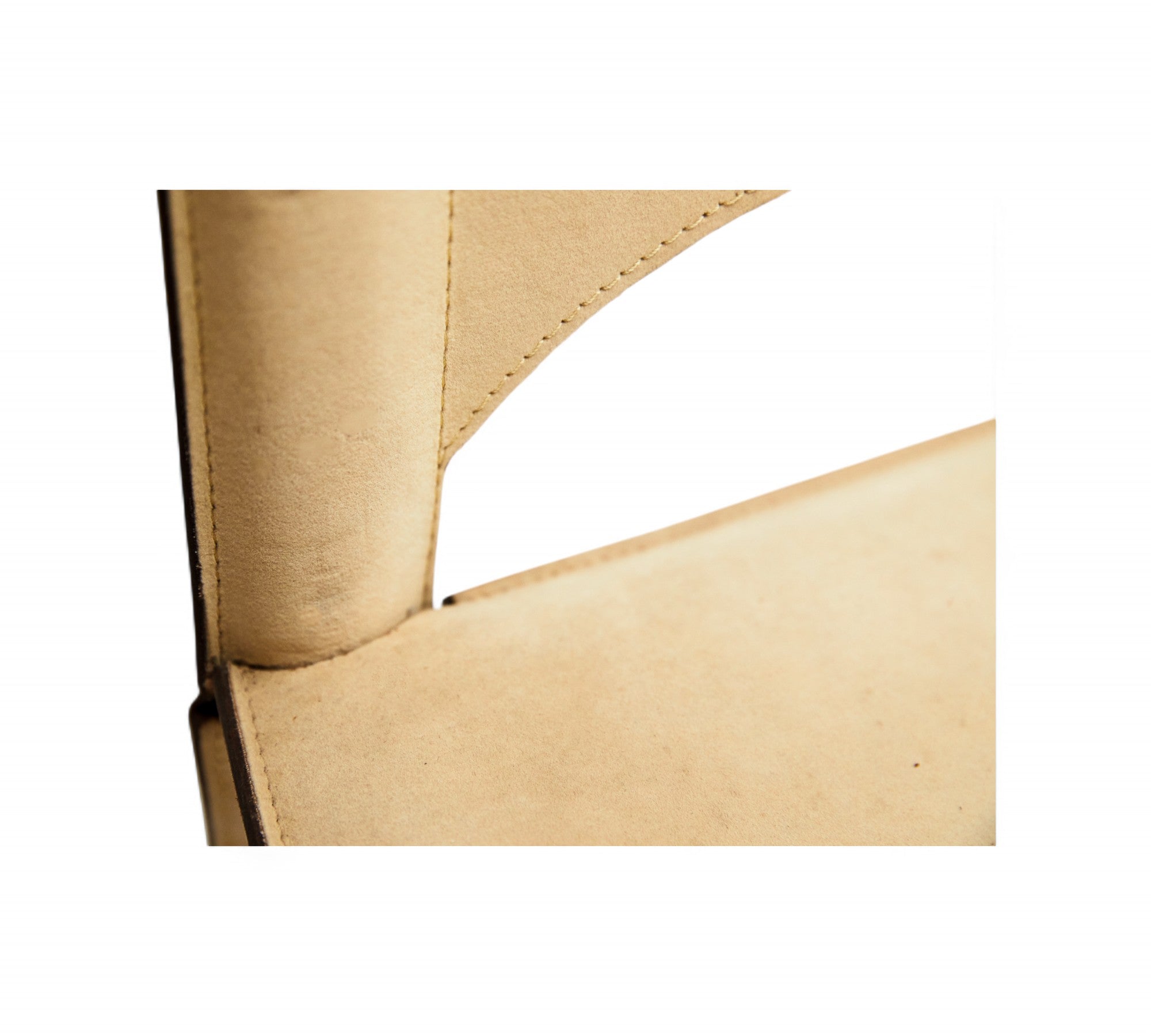 Each chair proudly displays the De Couro of Brazil manufacturing label underneath the seat, underscoring their quality and authenticity. Despite any minor scratches or stains, visible in the provided pictures, the chairs are in great condition. Their versatile design seamlessly integrates into any home decor style, offering both aesthetic appeal and comfort.