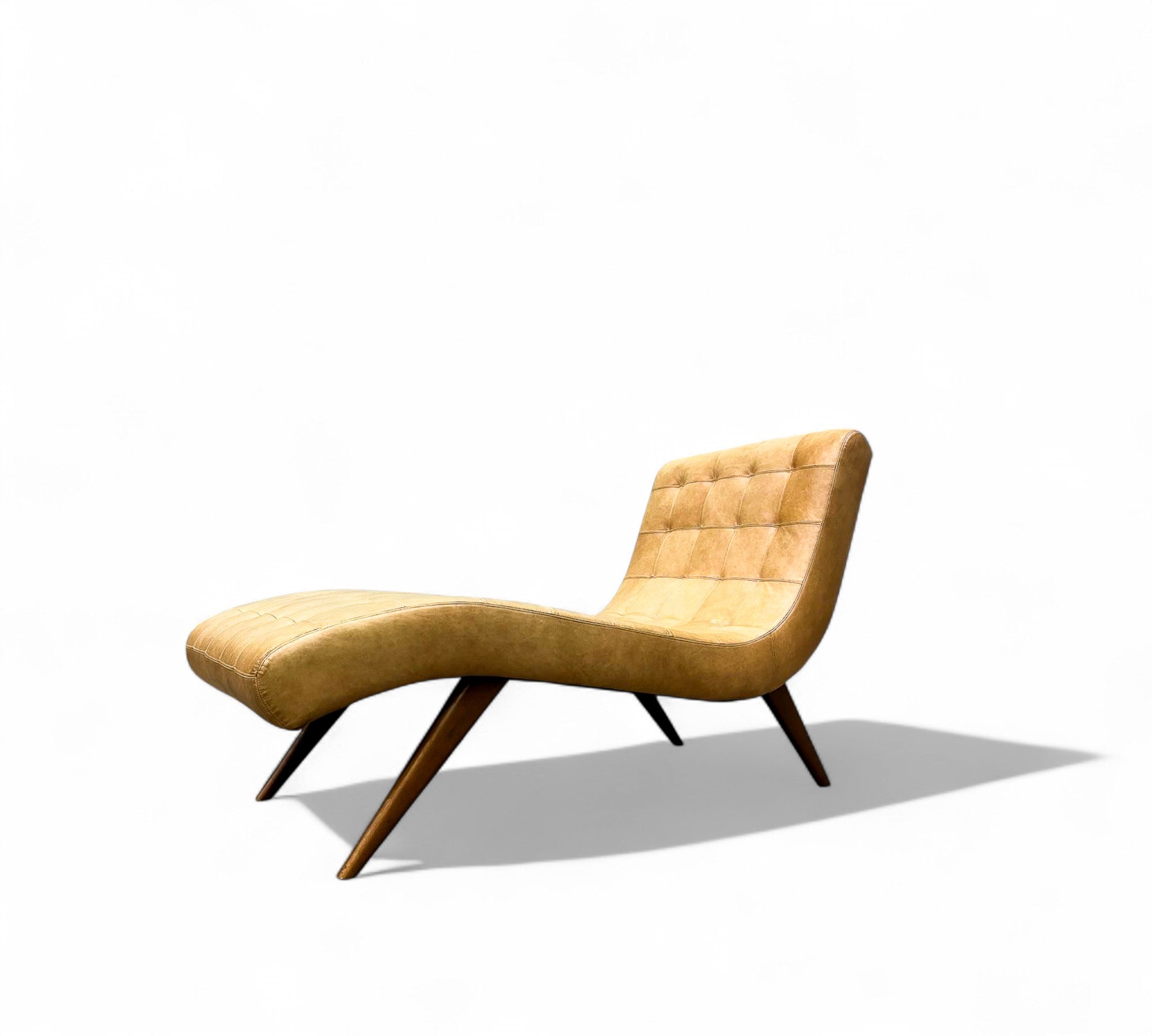 Chaise lounge in Hardwood and Faux Leather, Unknown, 1950s - Lot 557A