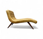 Indulge in the artistic beauty of this sculptural chaise lounge, showcasing a Caviuna wood structure and a curved body adorned with original upholstery featuring tuftings. The upholstery is remarkably well-preserved and in excellent condition. The base of the chaise lounge has been expertly refinished, highlighting its vibrant and colorful wood veins. While the authorship of this piece remains unknown, it serves as yet another testament to the exceptional craftsmanship and design prowess of Brazil during the 1960s.