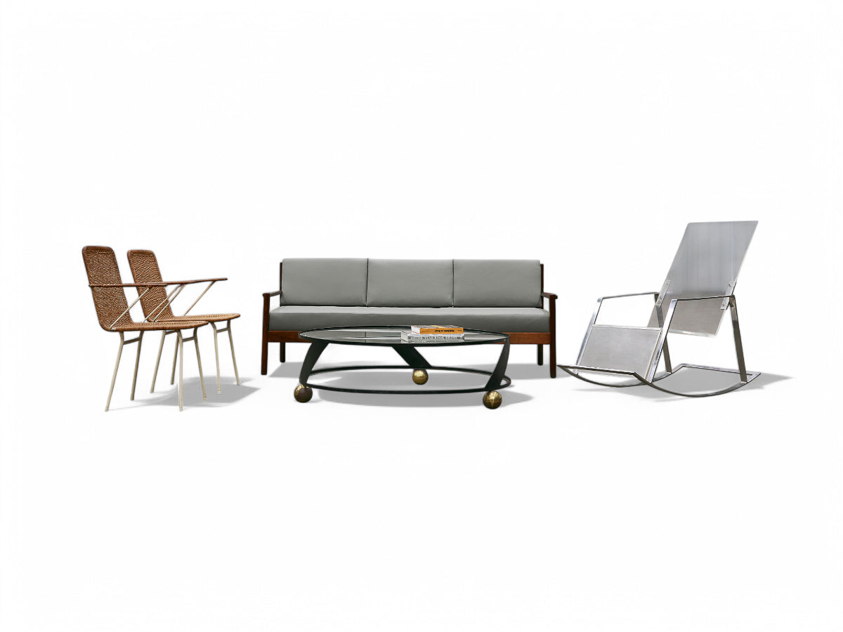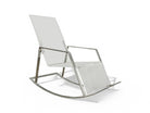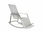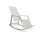 Unlike traditional Brazilian modern chairs, this rocking chair is crafted from metal and acrylic, showcasing a contemporary and innovative design. The curved metal base enables gentle rocking motion, enhancing comfort and relaxation.