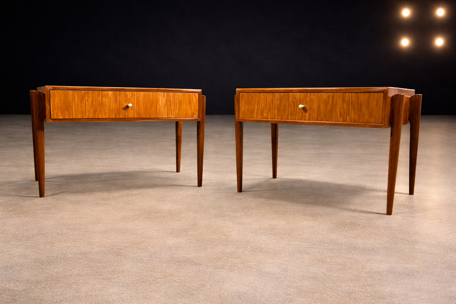 Architectural Pair of Brazilian Modern Side Tables with Drawers in Ivory Wood, 1950s - Lot 727a